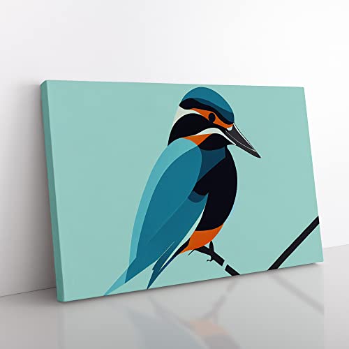 Lush Kingfisher Bird Abstract Canvas Wall Art Print Ready to Hang, Framed Picture for Living Room Bedroom Home Office Décor, 30x20 Inch (76x50 cm)