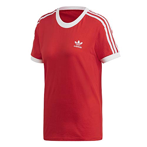 Adidas Women's 3 STR TEE T-Shirt, lush red/White, 2 UK