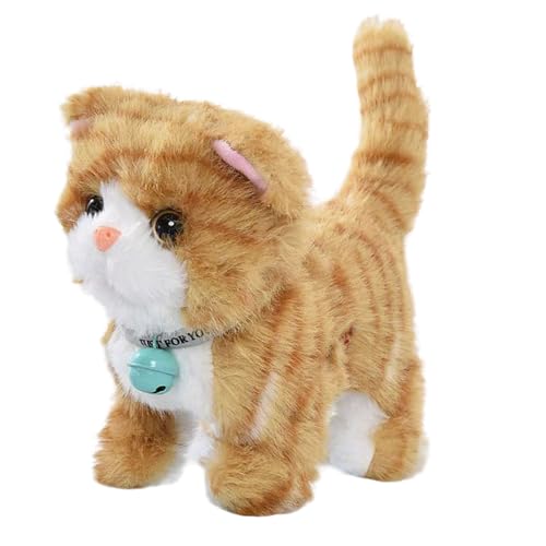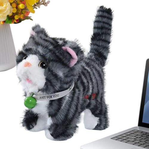 Electric Stuffed Walking Cat Plush Toy Interactive Meowing Plush With Movement & Sounds, 7" Walking P-lush Kitty Toy Versatile For Child's Gift Simulation Electronic Pet Toys