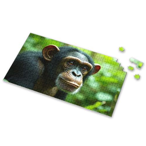 Toys Under 10 Dollars A Chimpanzee With Expressive Eyes In A Lush Green Background Picture Puzzle Jigsaw Puzzle 500 Pieces(1000PCS)