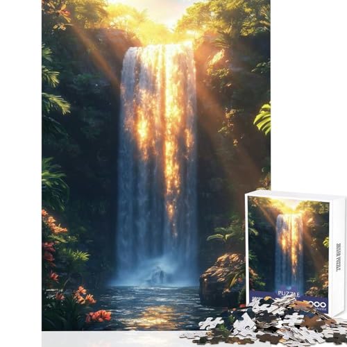 1000 Piece Teenager Puzzles Serene Waterfall in Lush Forest Anti-Stress Toys Great Gifts And Toys Educational Game with Fully Interlocking Randomly Shaped Pieces (Size 50x75cm)