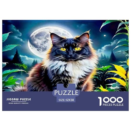 Cute Cat Recycled Paper Jigsaw Puzzle 1000 Pc -Cat Moonlit Forest Lush Foliage Challenging Game Toys Gift for Home Wall Decoration52x38cm/1000pcs
