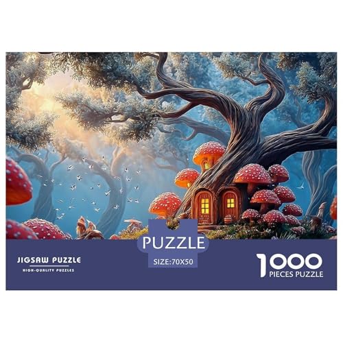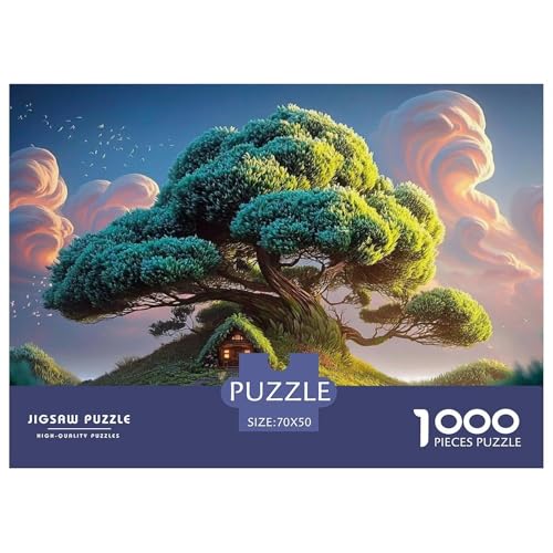 Tree with Lush Green Leaves 1000 Pcs Premium Cardstock Puzzle Mushroom House Unique Challenging Educational Toys Puzzles For Adults And Kids 70x50cm/1000pcs