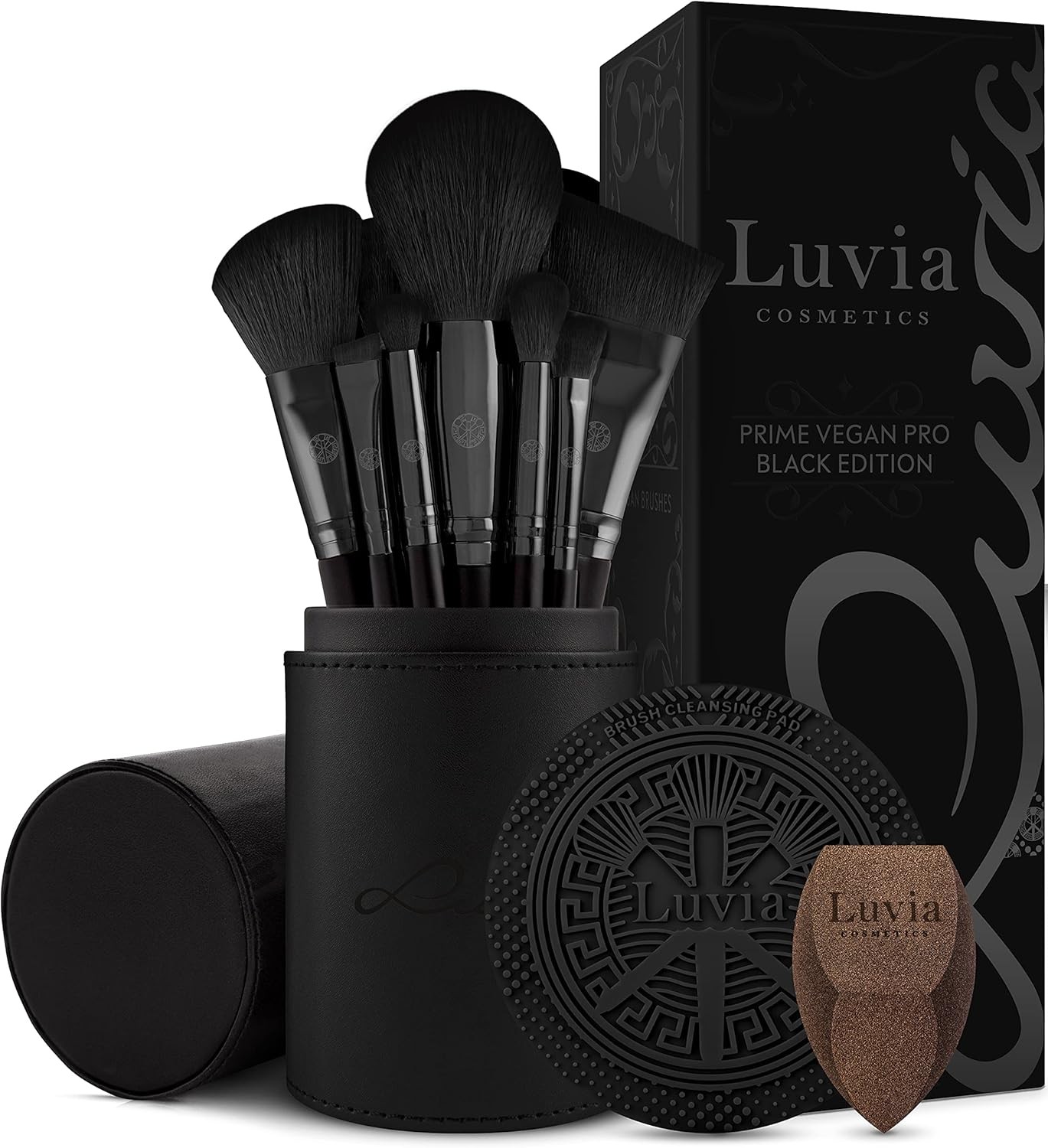 Luvia Prime Vegan Pro Make-Up Brush Set, Black, 12 Makeup Brushes Including Bru