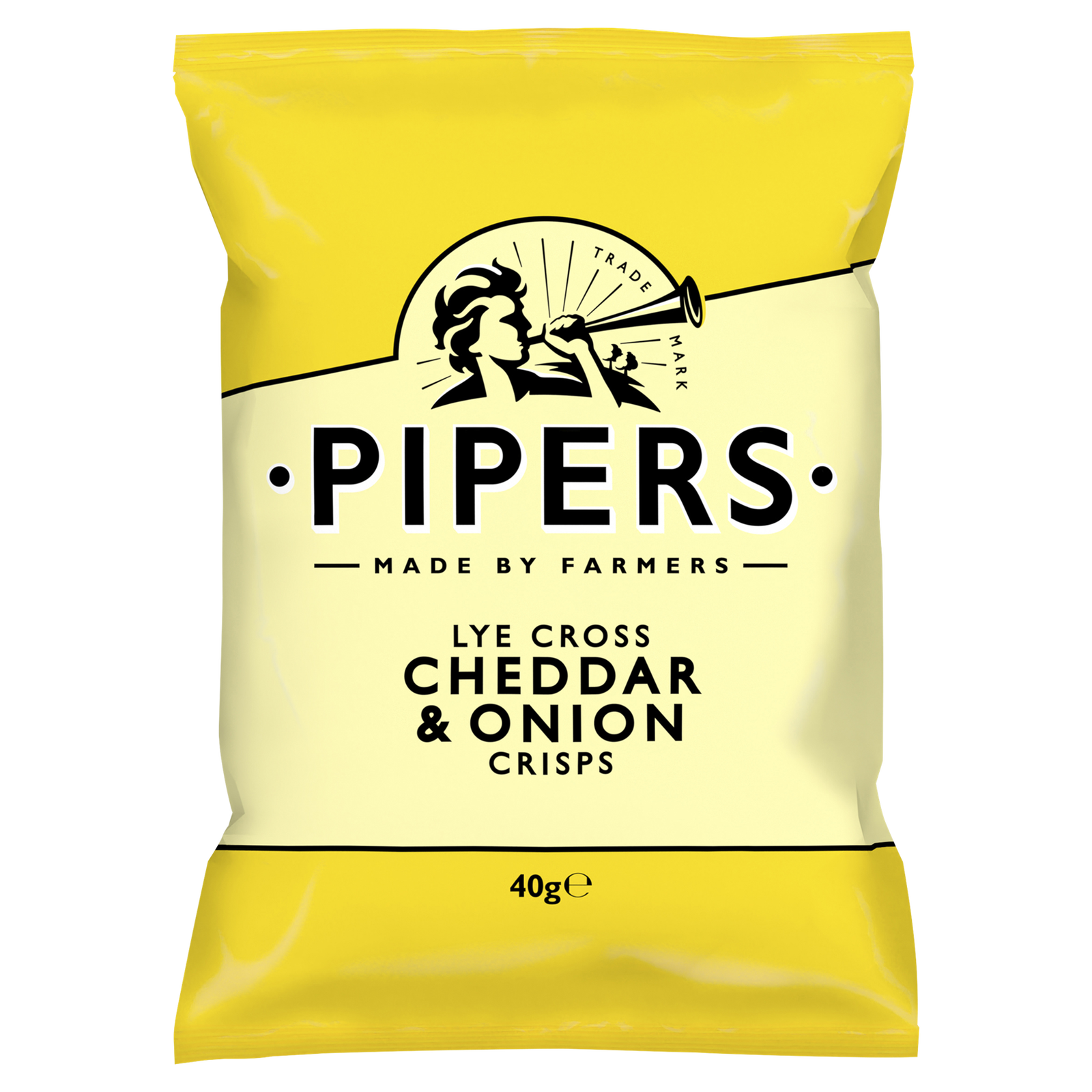 Pipers Lye Cross Cheddar And Onion Crisps 24 x 40g Bags Tangy Crunchy Snacks