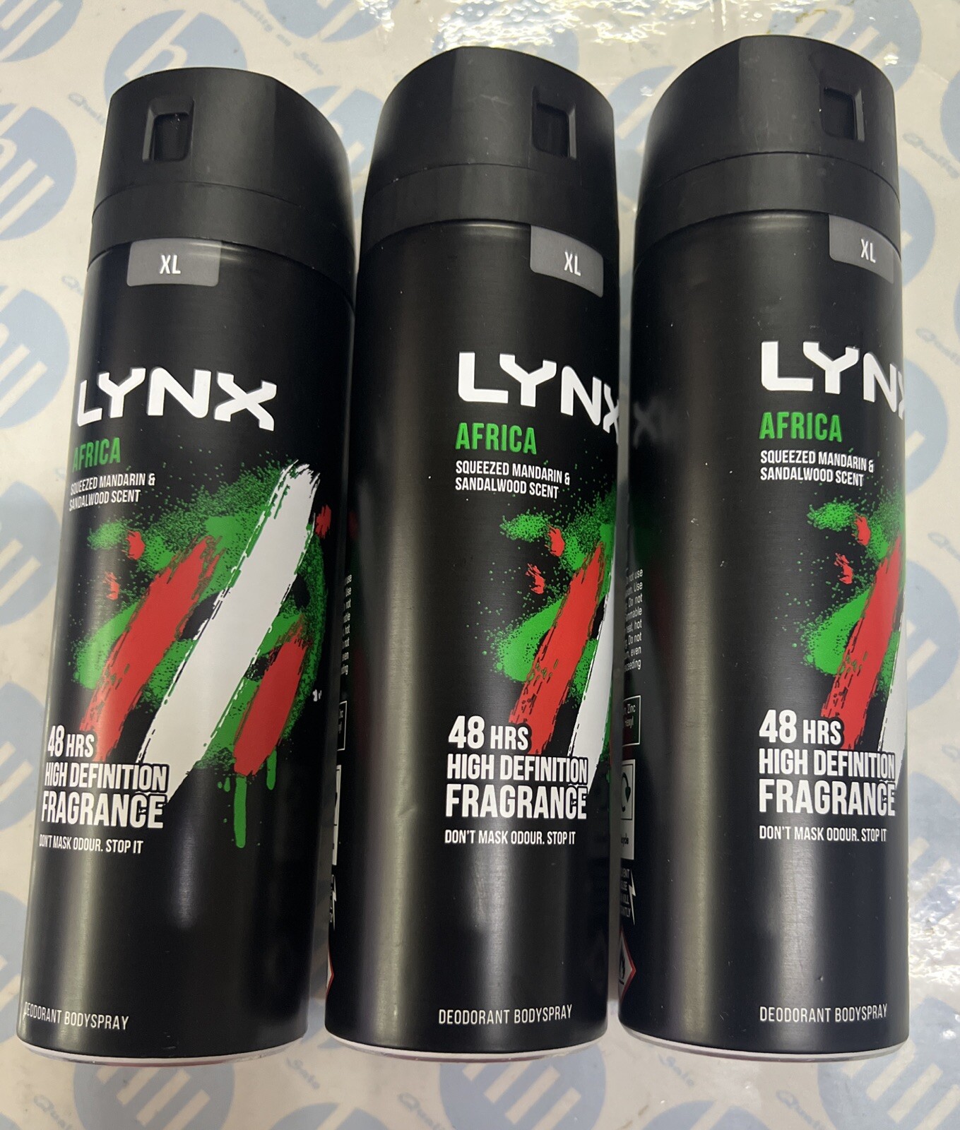 3x Lynx XL Africa 48H Squeezed Mandarin & Sandalwood Scent Body Spray Deo, 200ml