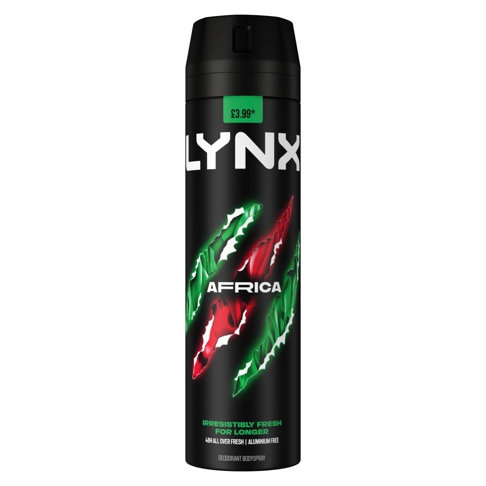 Lynx Africa Body Spray XL Deodorant Deo Aerosol Fresh Scent48Hour Pack 6 x 200ml