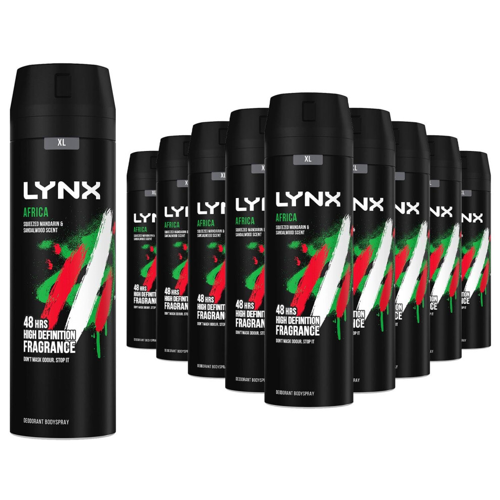 Lynx Africa Deodorant for Men, Body Spray, Deodorant Spray with 48 Hours High Definition Fragrance of Geranium and Vanilla Scent, 200ml (Pack of 10)
