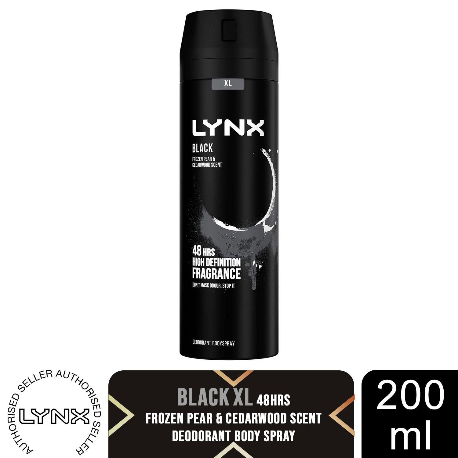 Lynx XL Black 48H Fresh Frozen Pear & Cedarwood Scent Body Spray Deo, 200ml