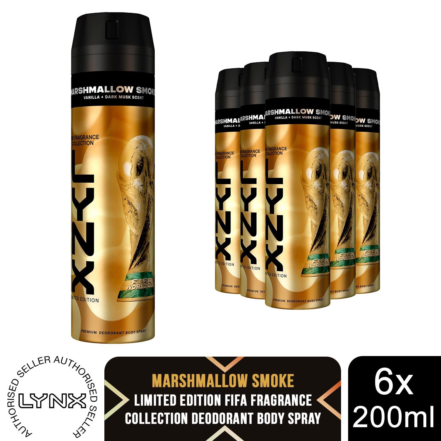 Lynx FIFA Limited Edition Fine Marshmallow Smoke Deodorant Body Spray 200ml, 6pk