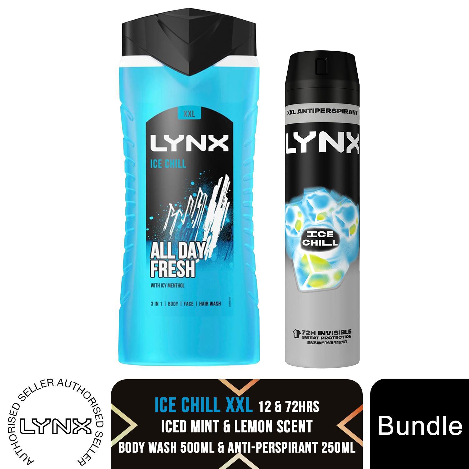 Lynx Ice Chill 3pk Bundle of 250ml Body Spray and 225ml & 500ml Shower Gels