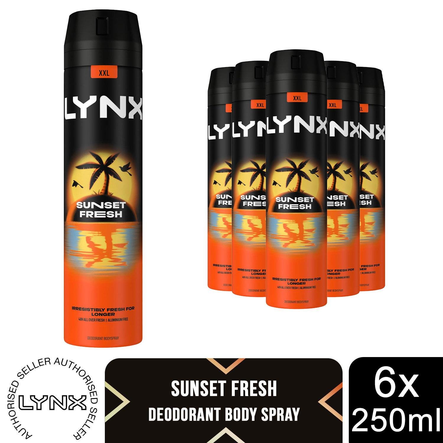 Lynx Sunset Fresh Deodorant Body Spray 48H Fresh 250ml, 6 Pack