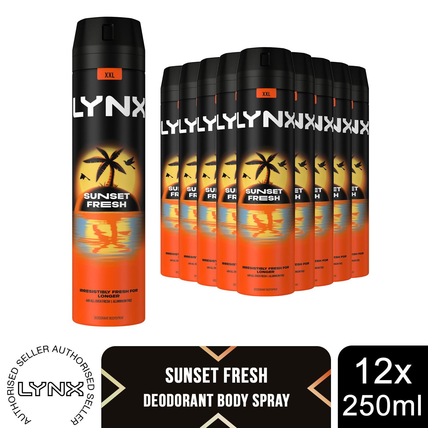 Lynx Sunset Fresh Deodorant Body Spray 48H Fresh 250ml, 12 Pack