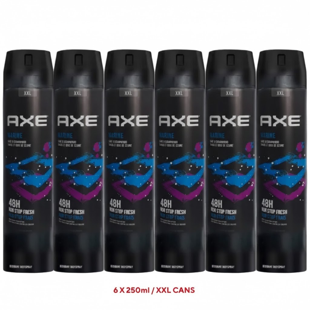6 x 250ml XXL AXE / LYNX MARINE MENS Deodorant Body Spray FREE POST UK