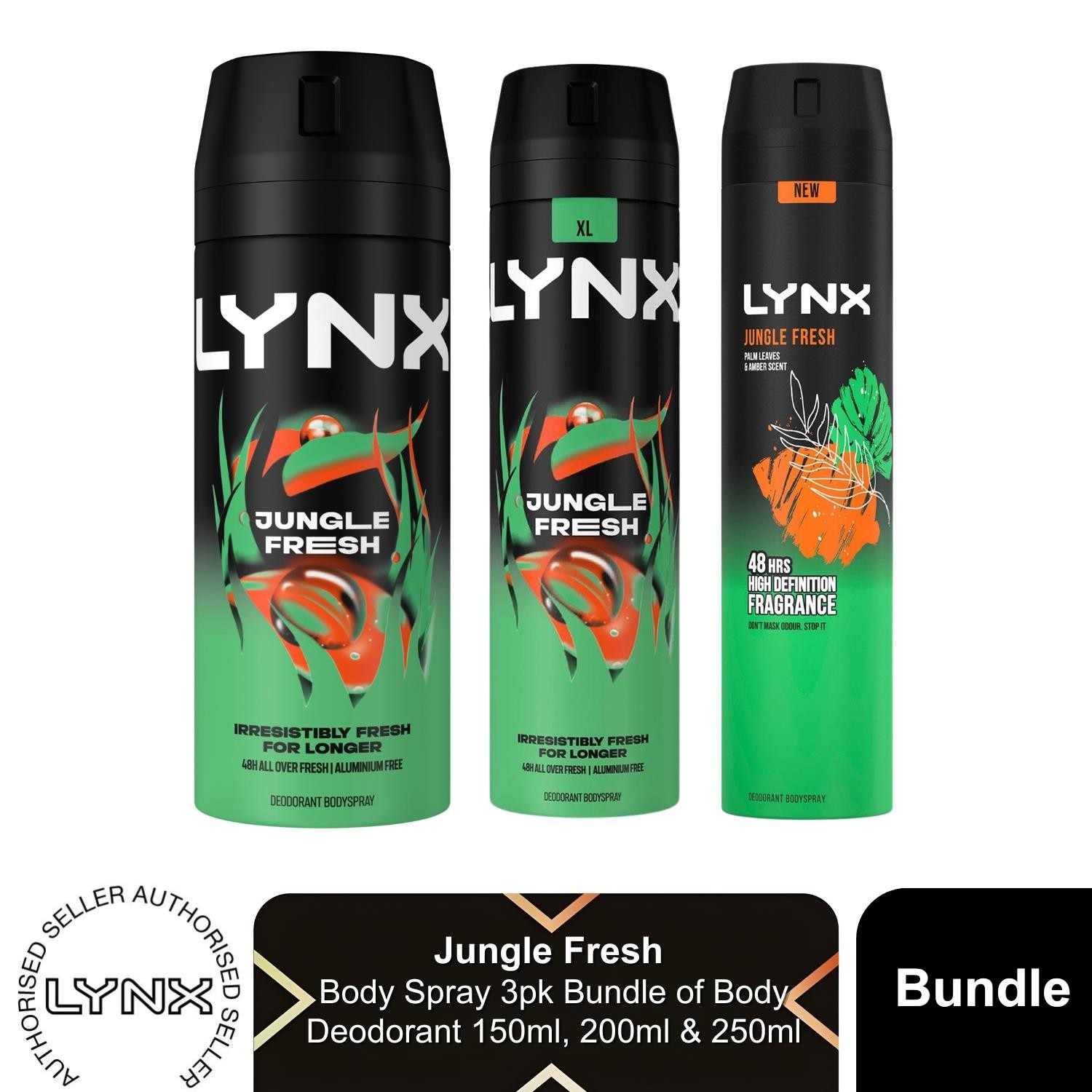 Lynx Jungle Fresh Body Spray 3pk Bundle of Body Deodorant 150ml, 200ml & 250ml