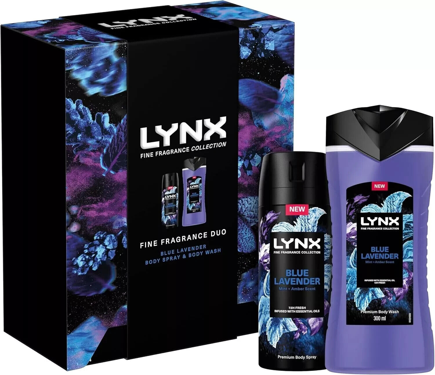 LYNX Fine Fragrance Collection Blue Lavender Duo Deodorant Gift Set Body Wash &