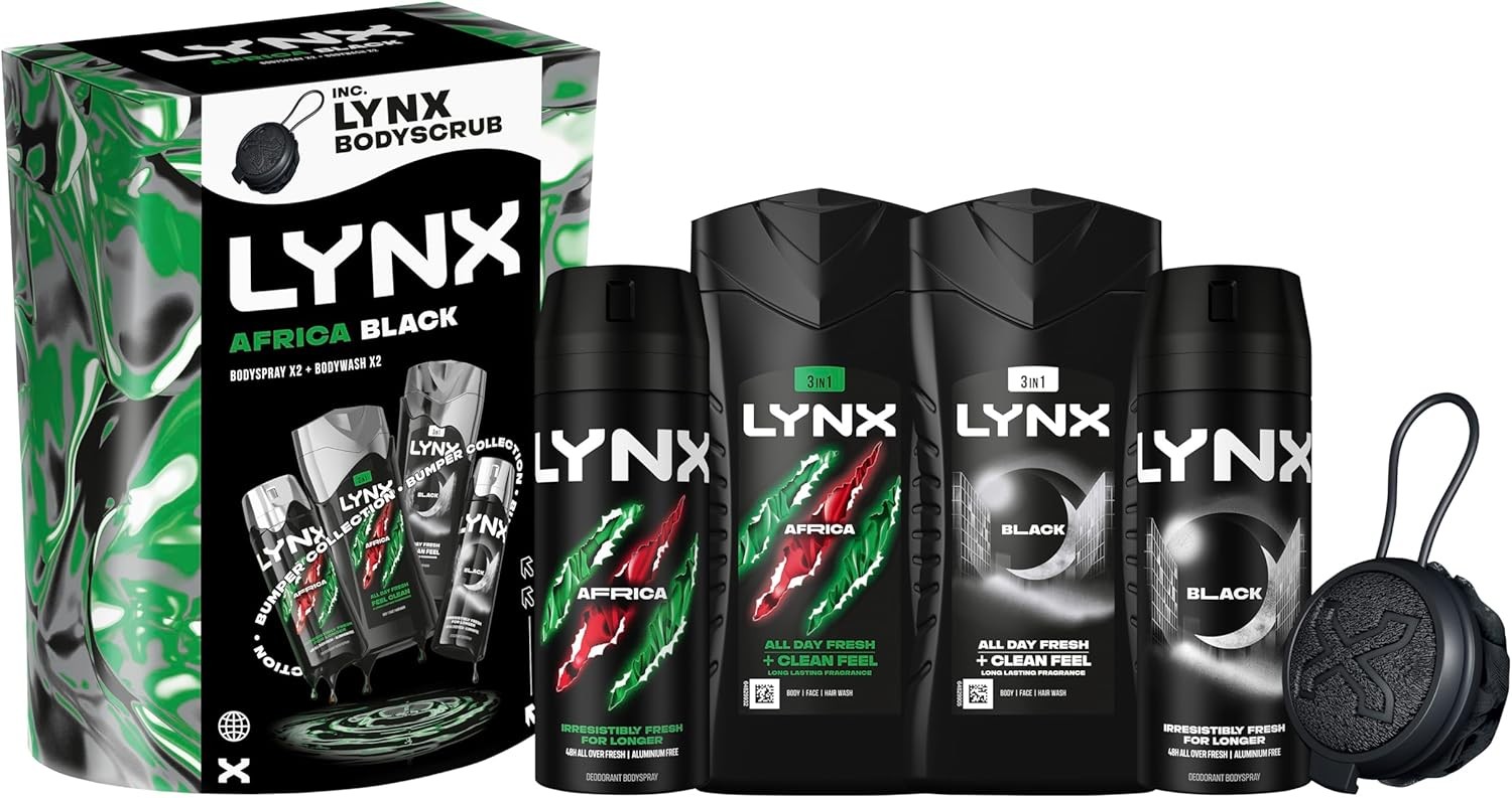 Lynx Gift Set Africa & Black Bumper with two body wash and spray duos &...