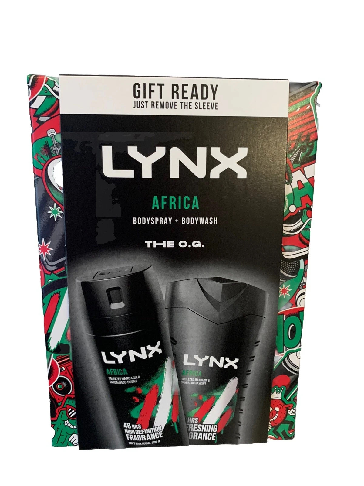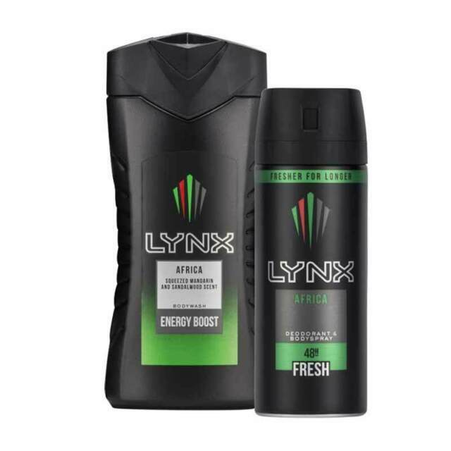 Lynx Africa Body Spray Deo Body Wash Mens Gift Ready Set 2 Piece