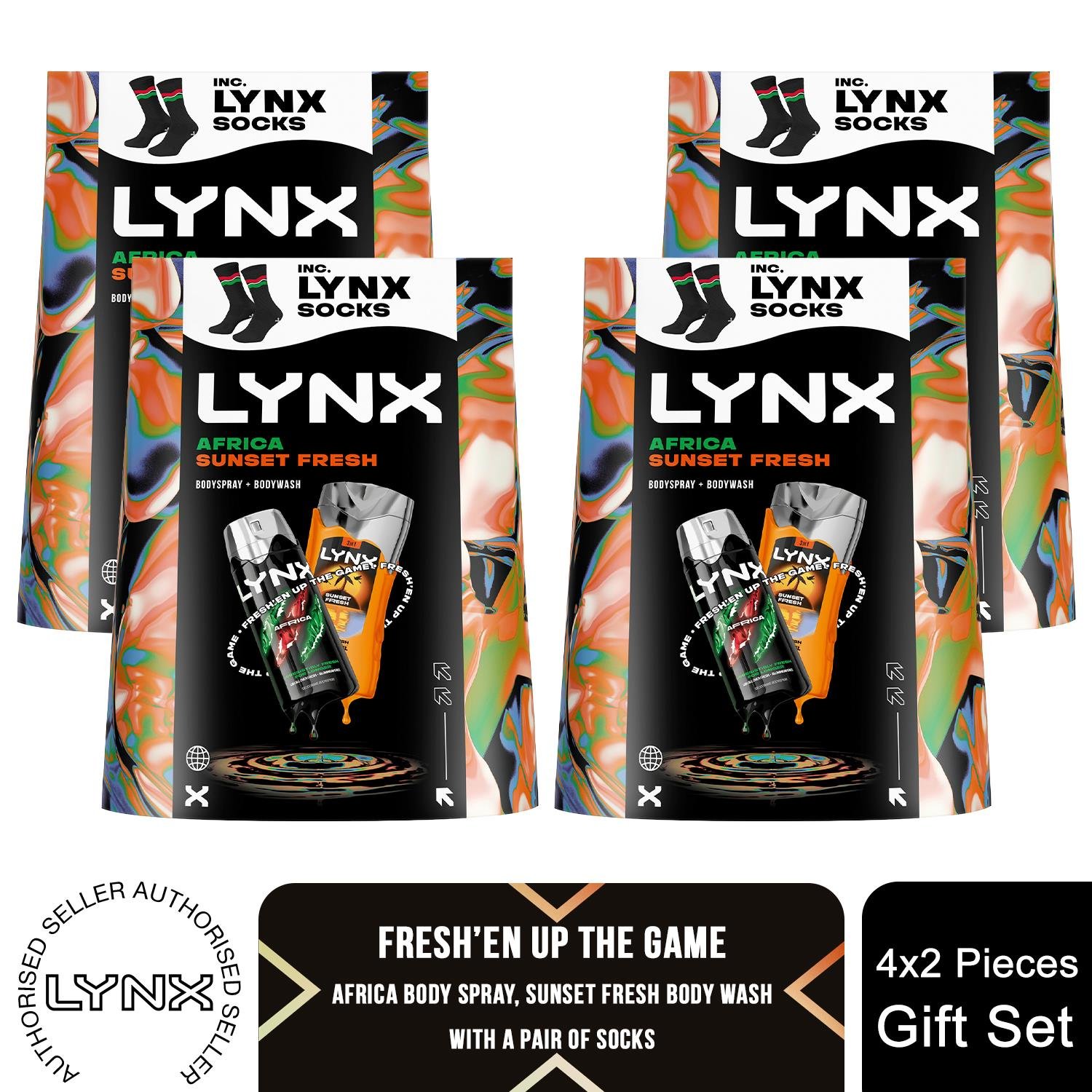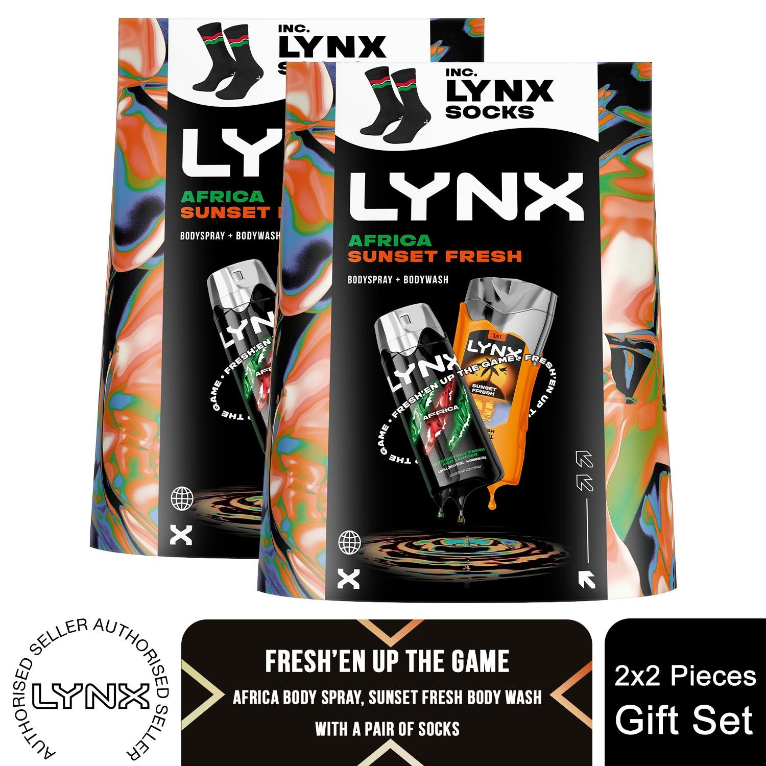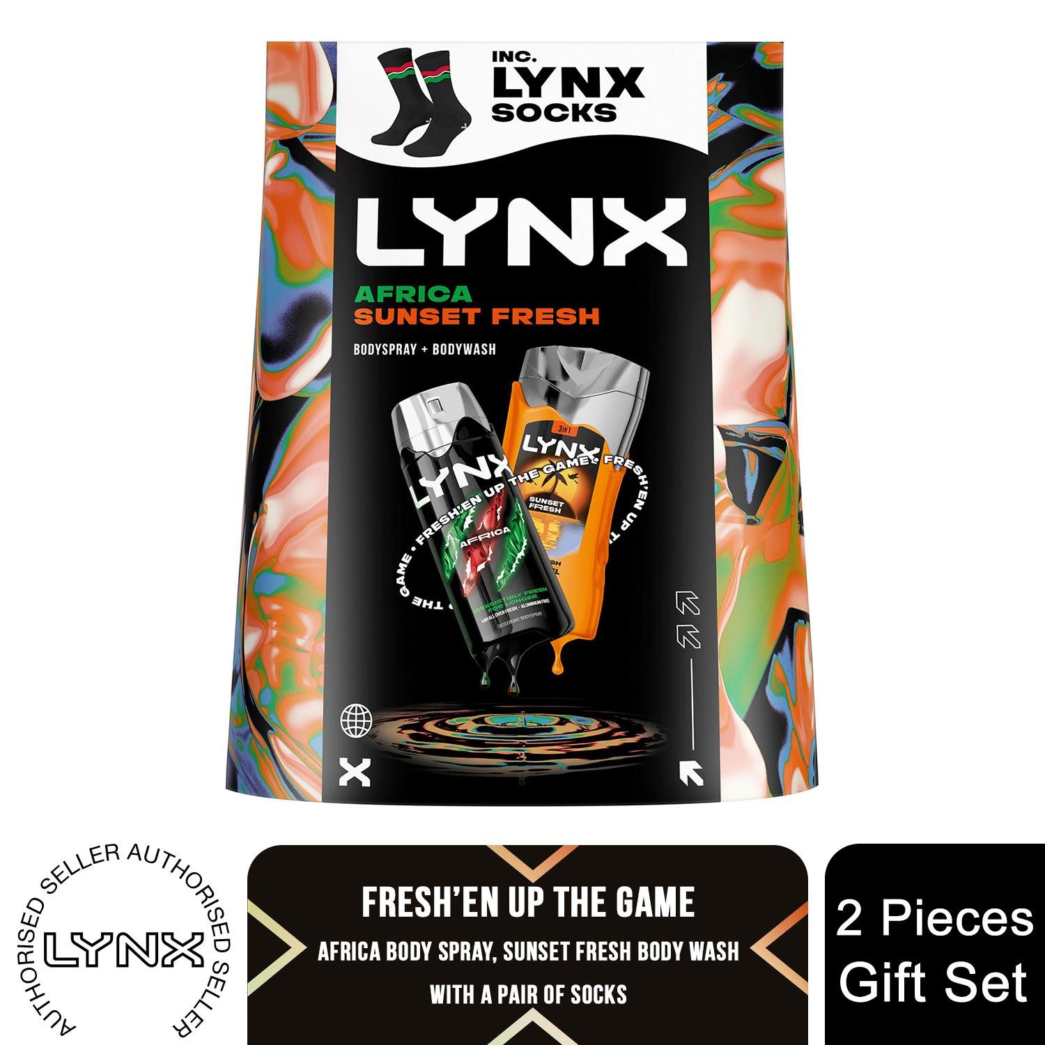 Lynx Africa & Sunset Fresh Gift Set with a body spray, a body wash and Socks perfect gifts for him 2 piece