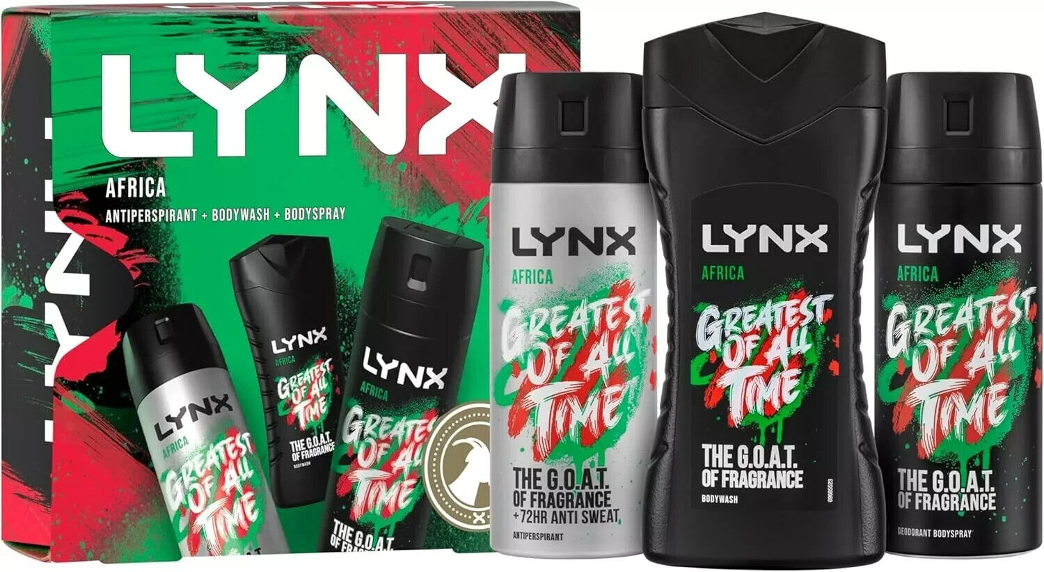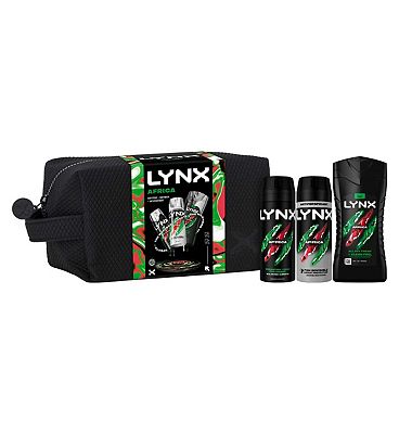 Lynx Africa Trio Gift Set with a body spray, a body wash and an anti-perspirant perfect for any occasion 3 piece