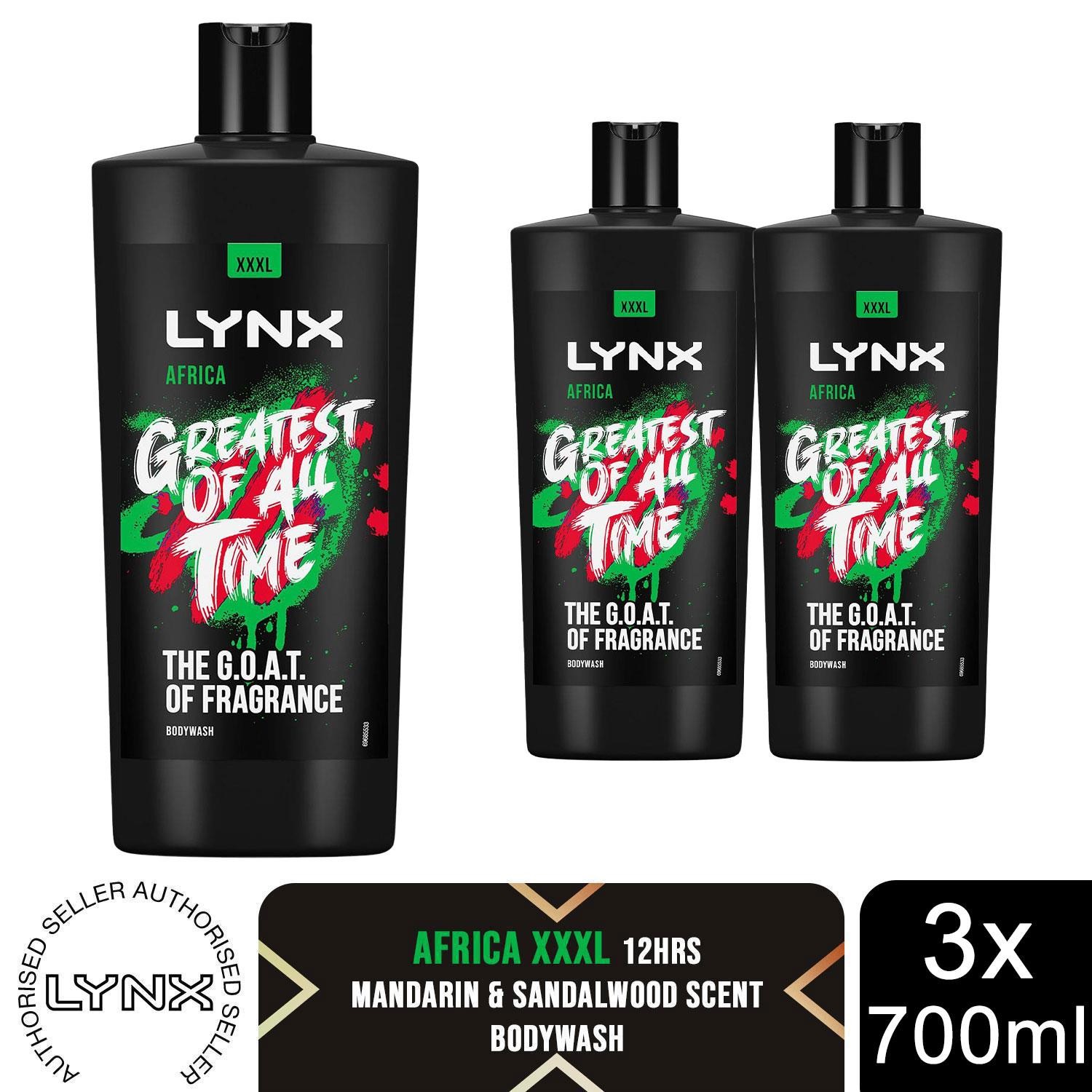 Lynx Africa G.O.A.T Shower Gel up to 12H of Fragrance XXXL Africa 700ml, 3 Pack