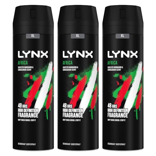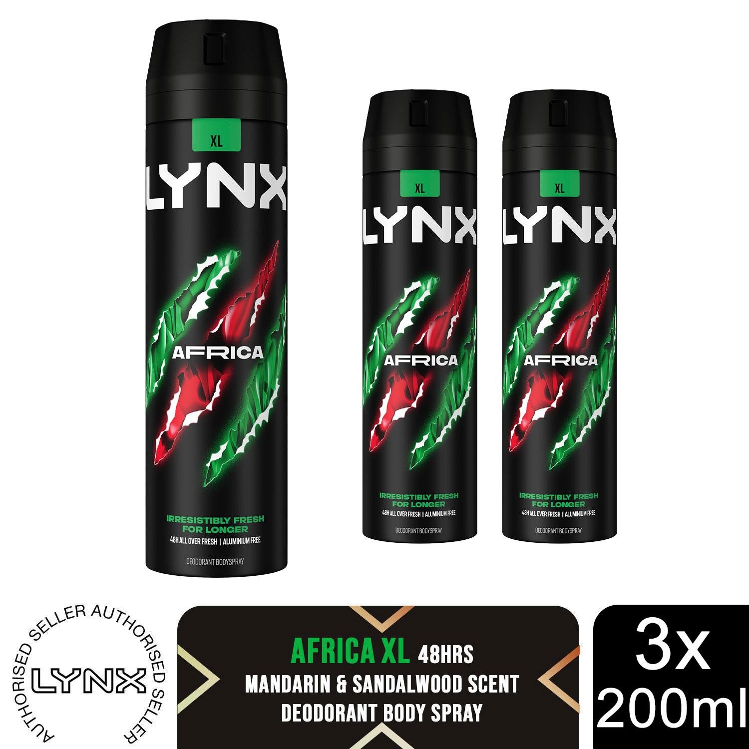 Lynx XL Africa 48H Squeezed Mandarin & Sandalwood Scent Body Spray Deo, 3x200ml