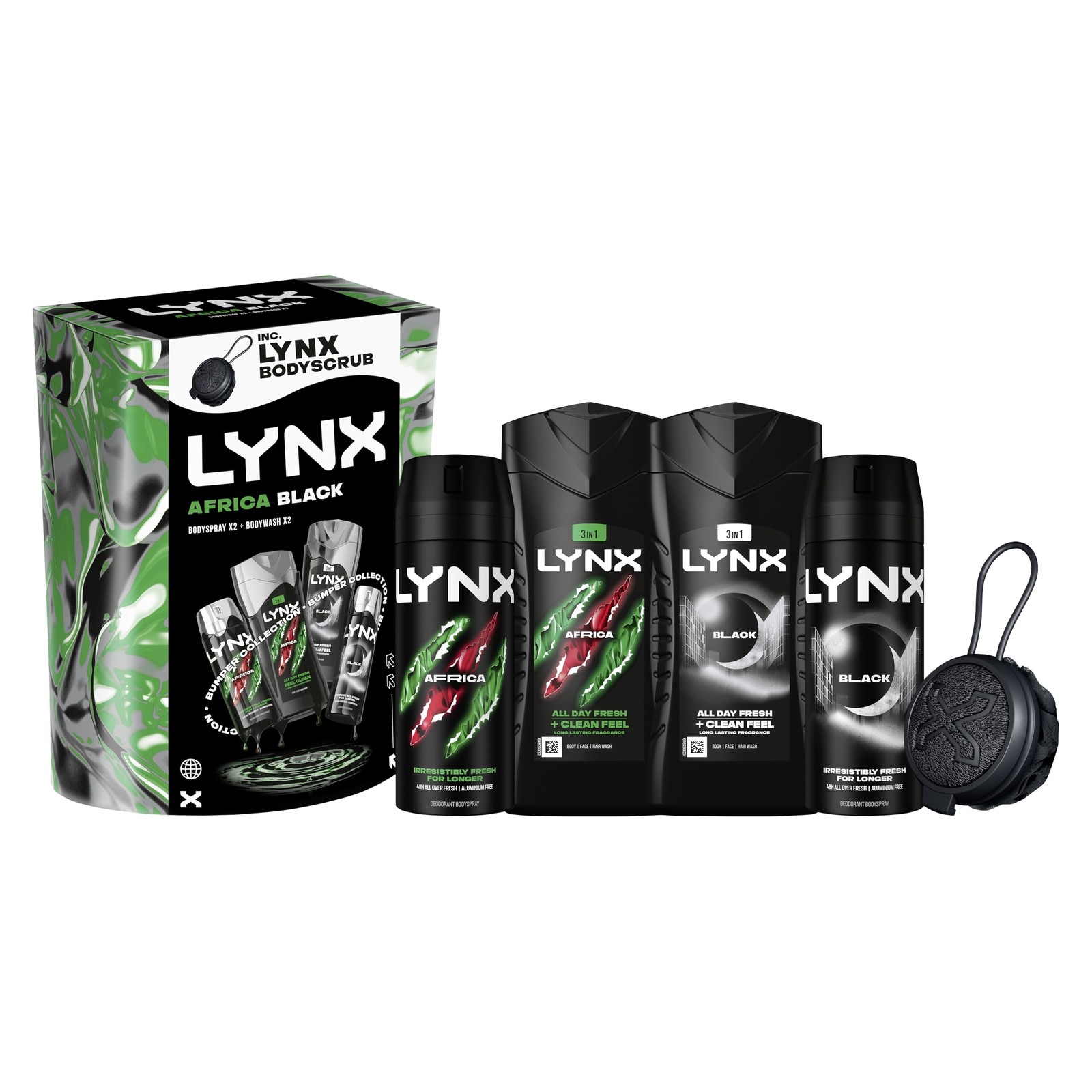 Lynx Gift Set Africa & Black Bumper with two body wash and body spray duos & a