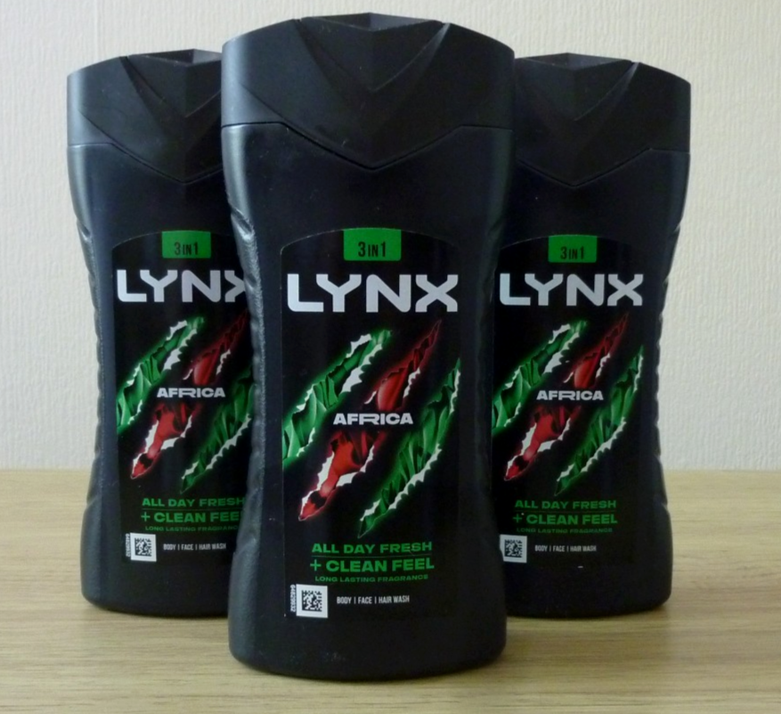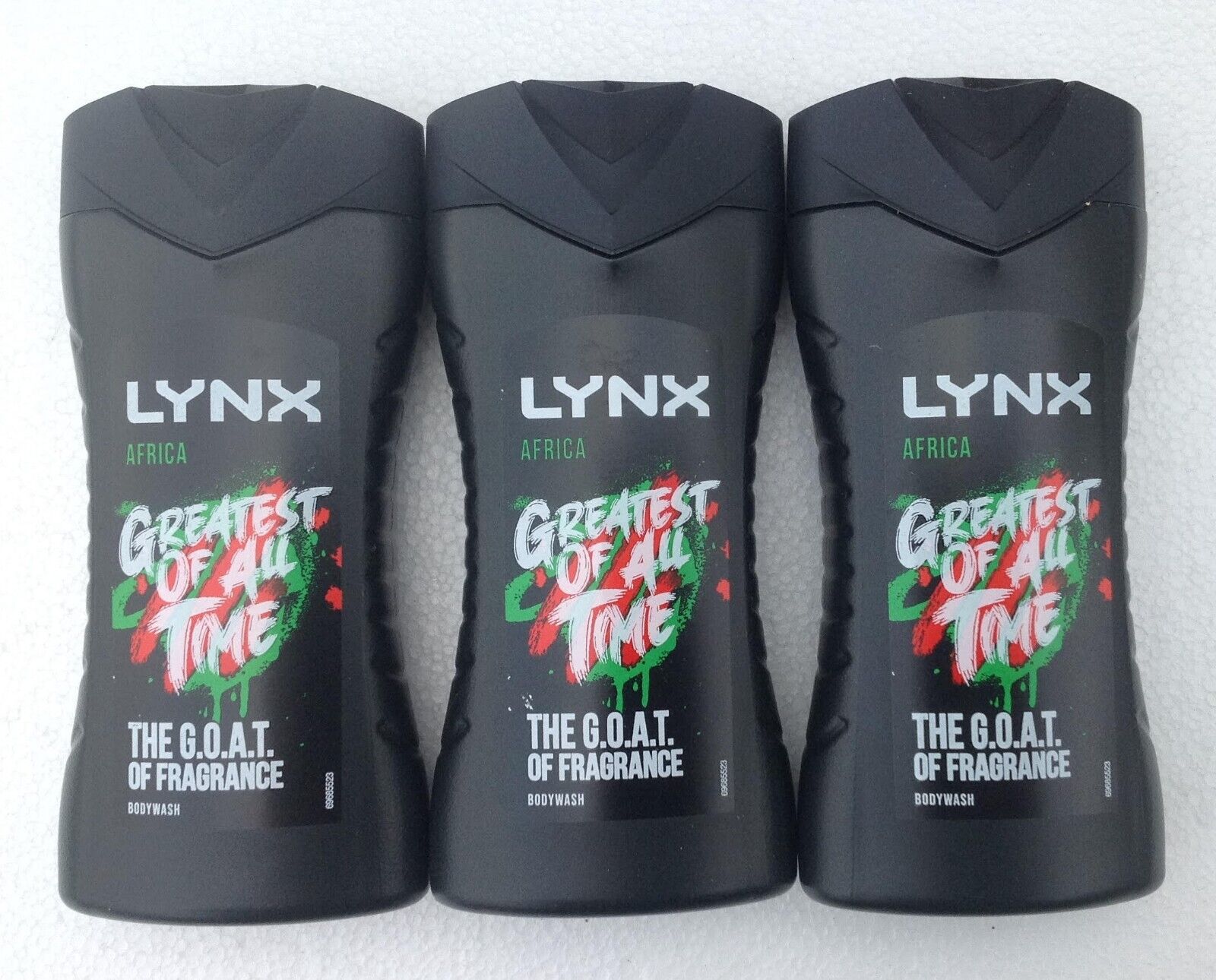 3 x Lynx Africa 3-in-1 Shower Gel (body, face, hair). 225ml.