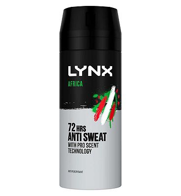 Lynx Africa Aerosol Body Spray Men's Deodorant Spray with a mandarin & sandalwood scent for 48 hours of odour busting, high definition fragrance 150 ml