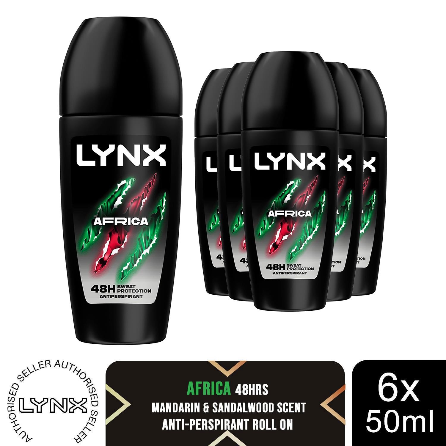 Lynx Africa Anti Perspirant Roll On 48 Hours Anti Sweat Protection 50ml, 6 Pack