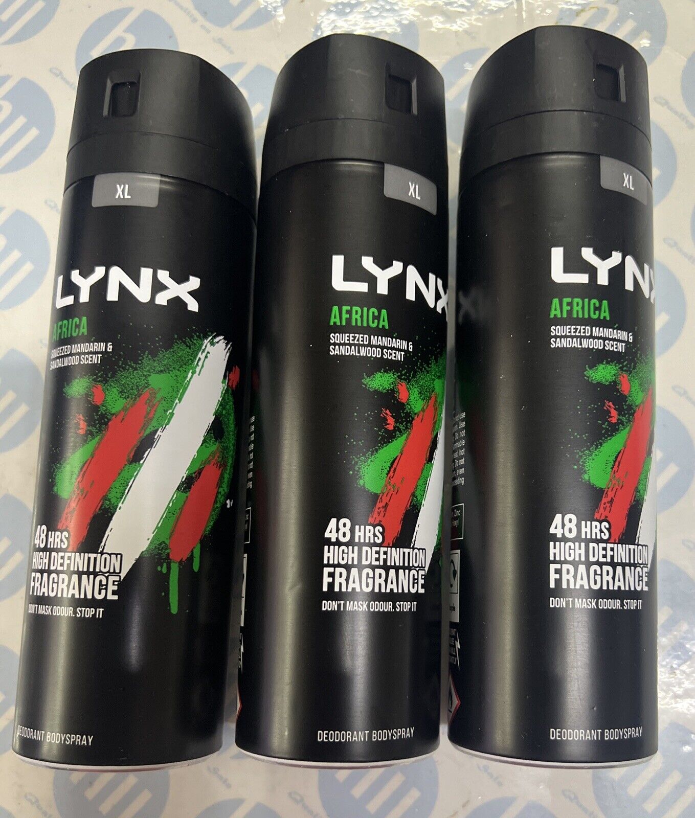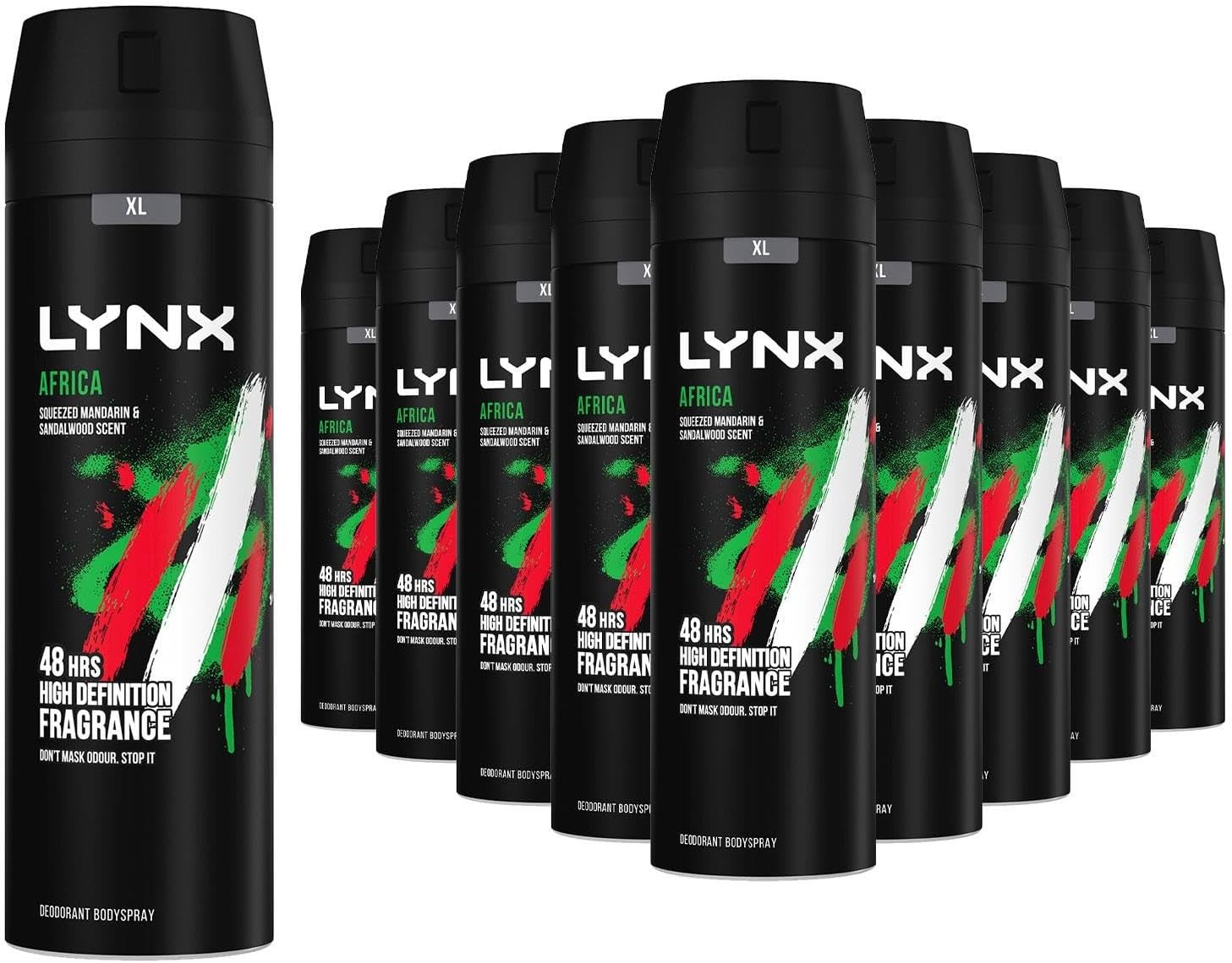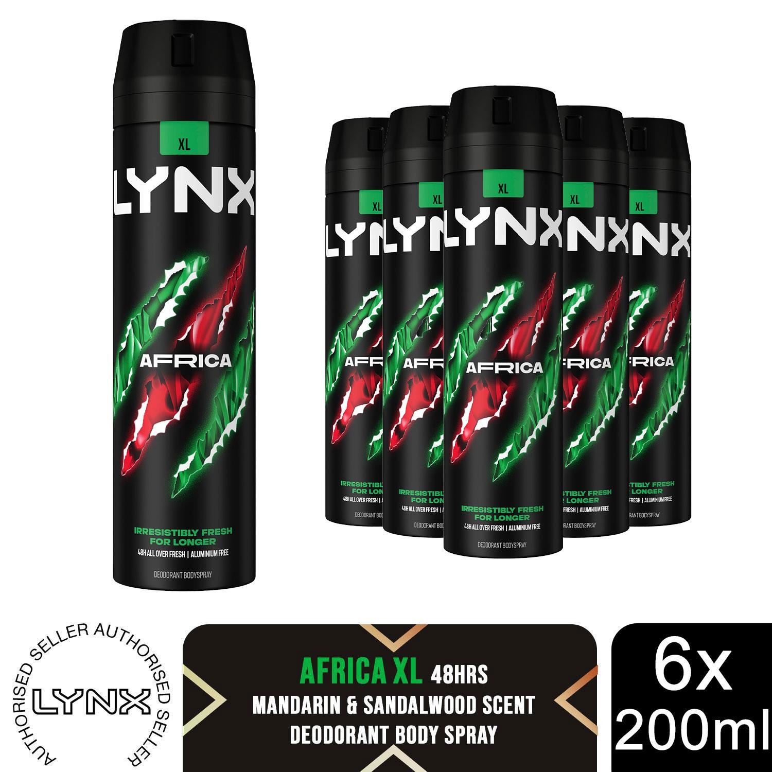 Lynx Africa Body Spray XL Deodorant Deo Aerosol Fresh Scent48Hour Pack 6 x 200ml
