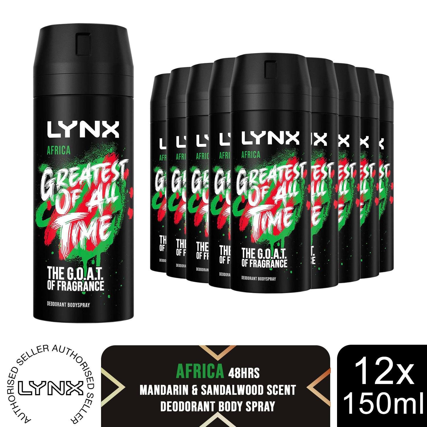 12 Pack of 200ml Lynx Africa Men's Fragrance, Aluminium Free Masculine Body...