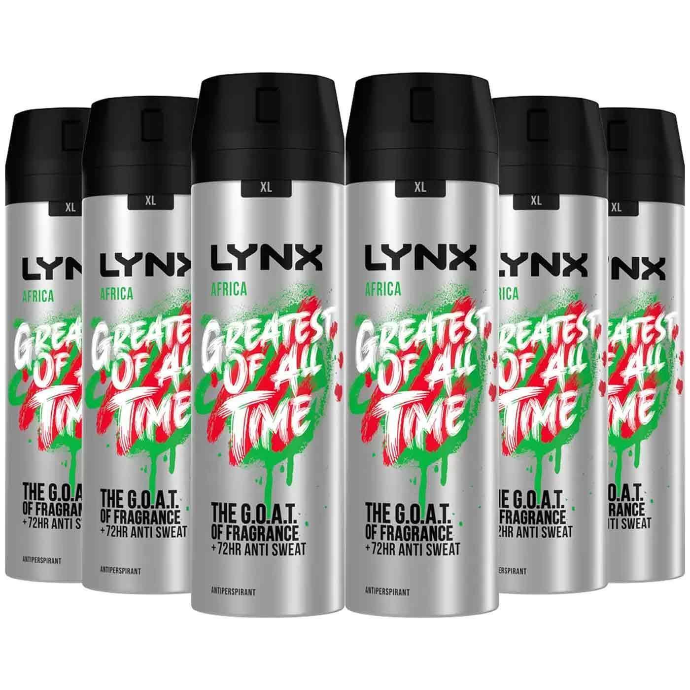 Lynx XL Antiperspirant Africa The G.O.A.T. of Fragrance Deodorant 200ml, 6 Pack