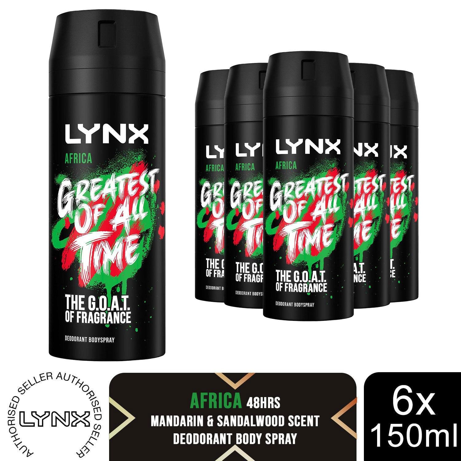 6 x Lynx Africa Deodorant Bodyspray 150ml, BRAND NEW