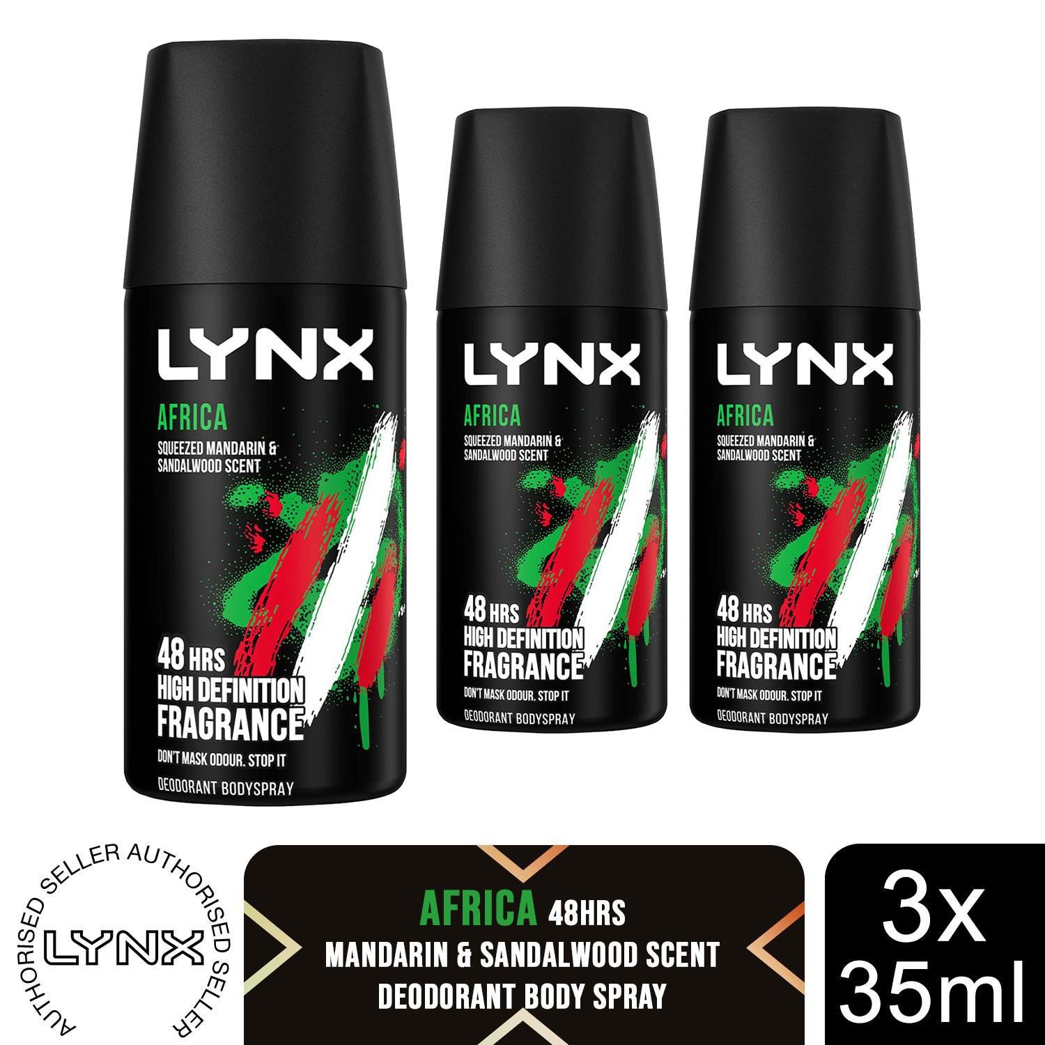 Lynx Body Spray Africa 48H High Definition Fragrance Deodorant for Men 35ml, 3pk