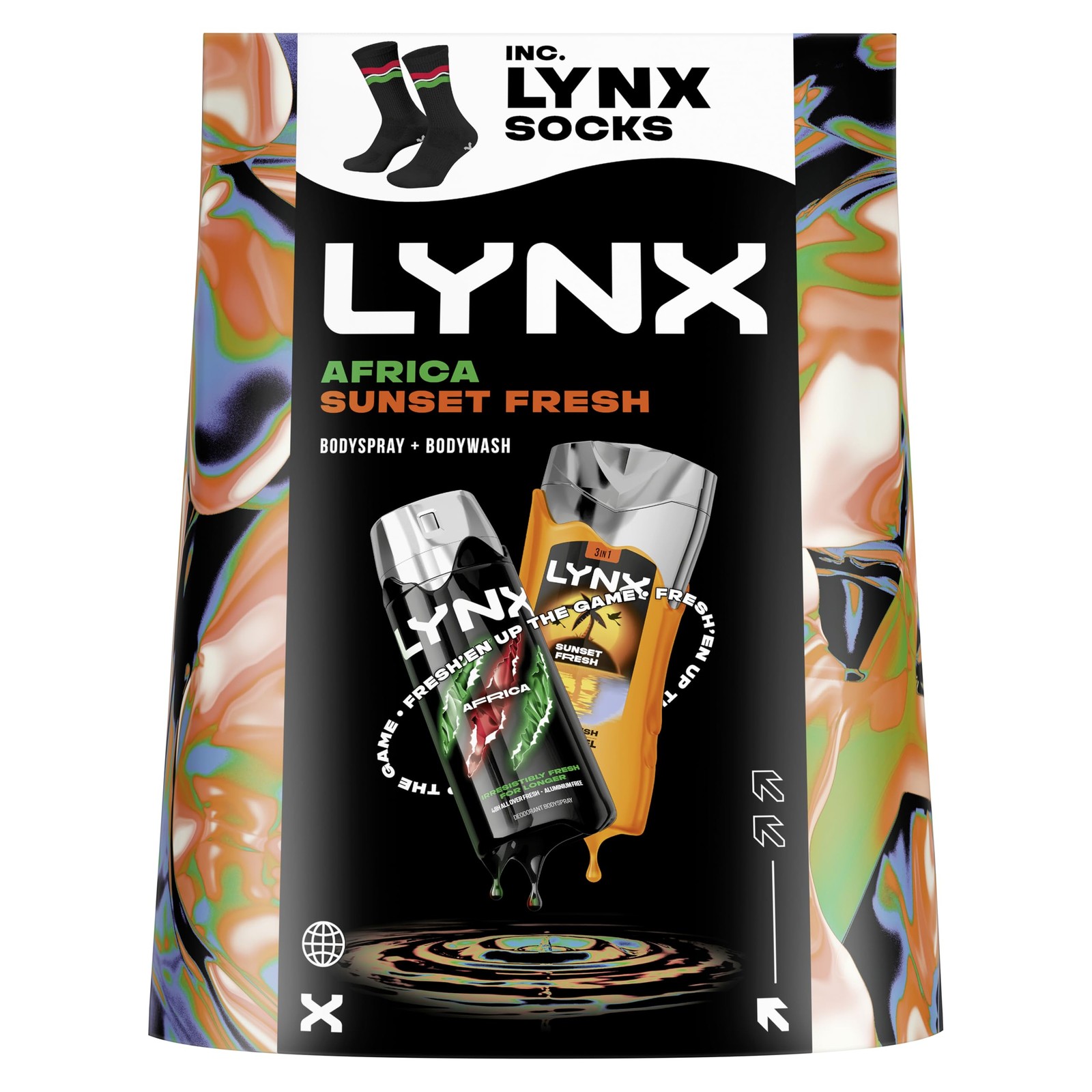 Lynx Gift Set Africa & Sunset Fresh with a body spray, a body wash and Socks pe