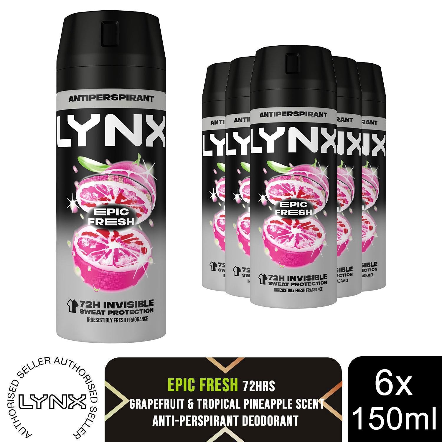 Lynx Epic Fresh Antiperspirant Aerosol Deodorant Spray 72H Protection 150ml, 6pk