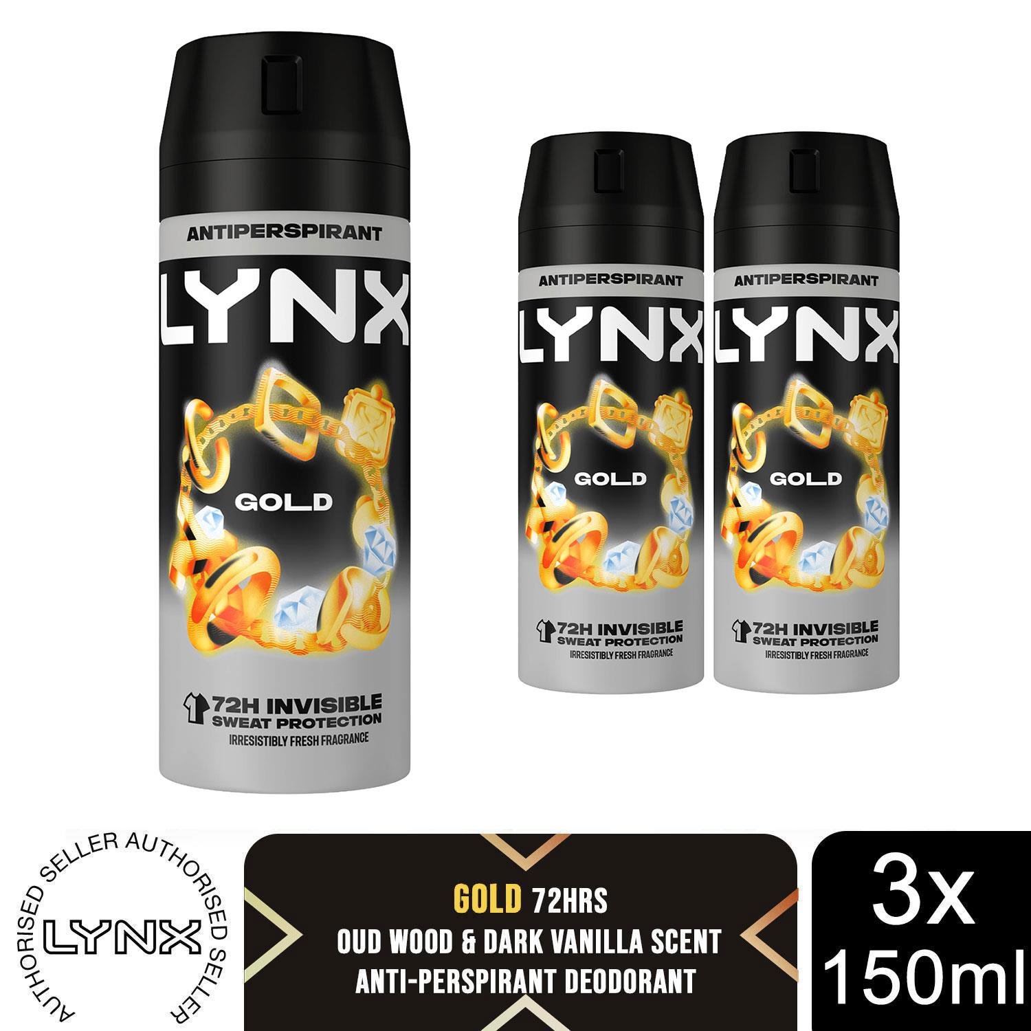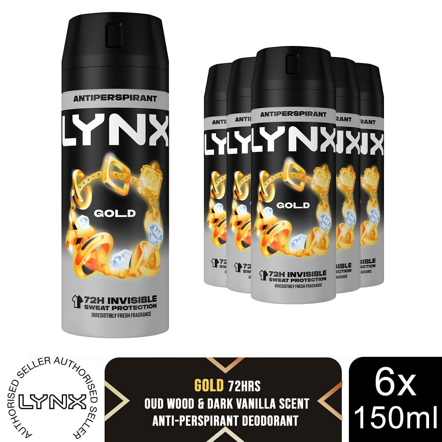 Lynx 72H Anti-Perspirant Deodorant Gold, Black or Jungle Fresh 150ml, 6 Pack