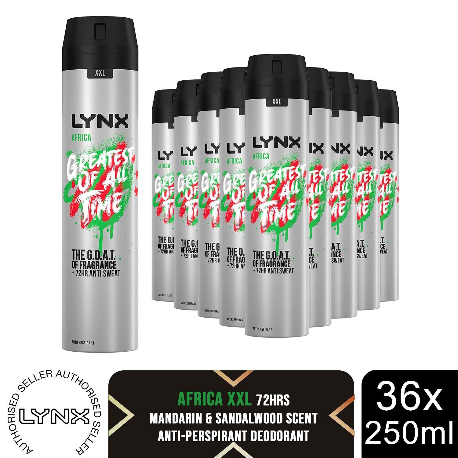 Lynx Antiperspirant Deodorant Spray Africa The G.O.A.T. of Fragrance 250ml, 36Pk