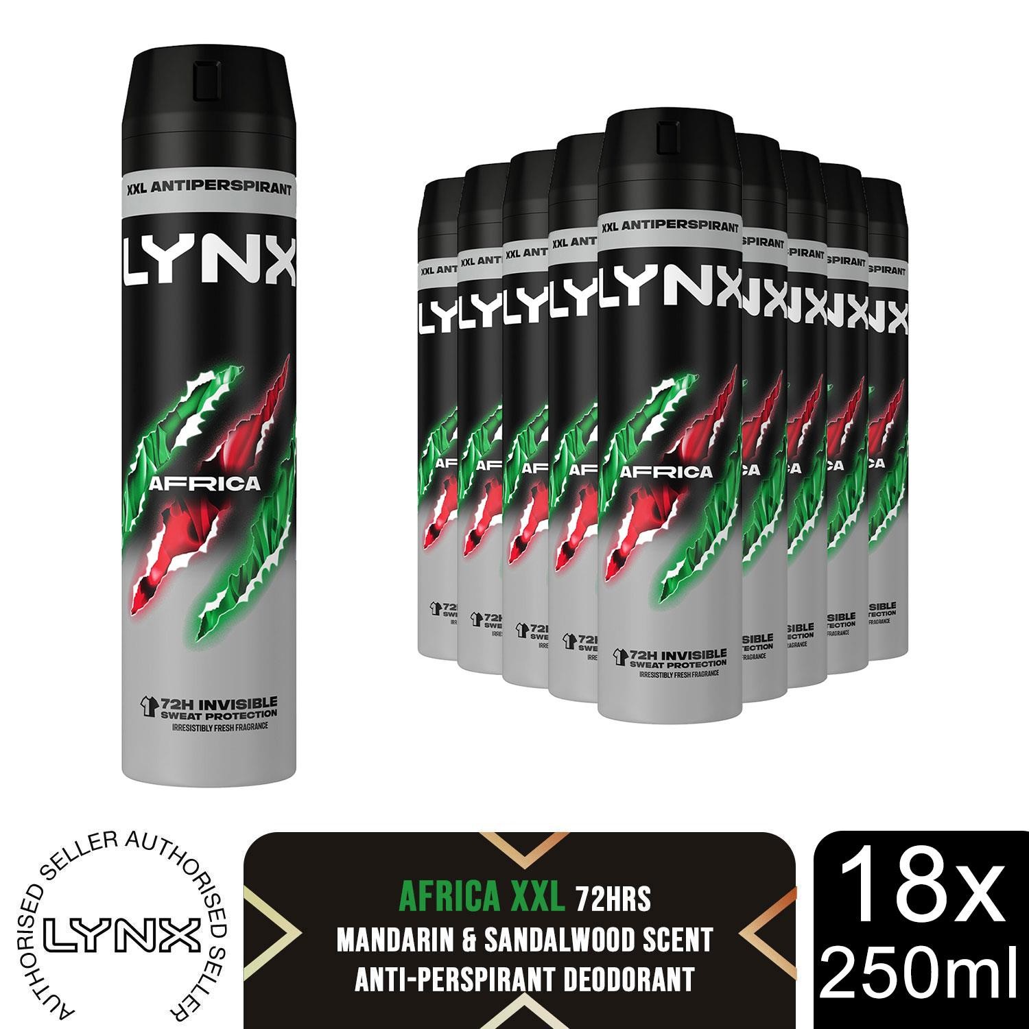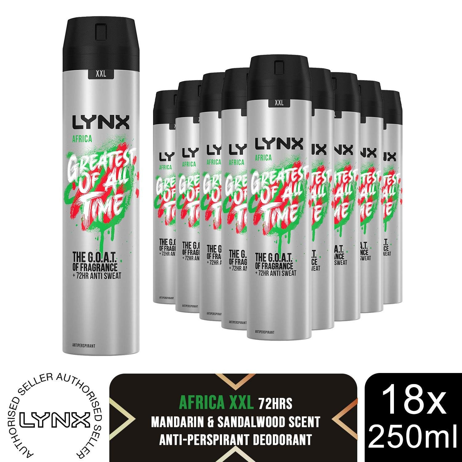 Lynx Antiperspirant Deodorant Spray Africa The G.O.A.T. of Fragrance 250ml, 18Pk