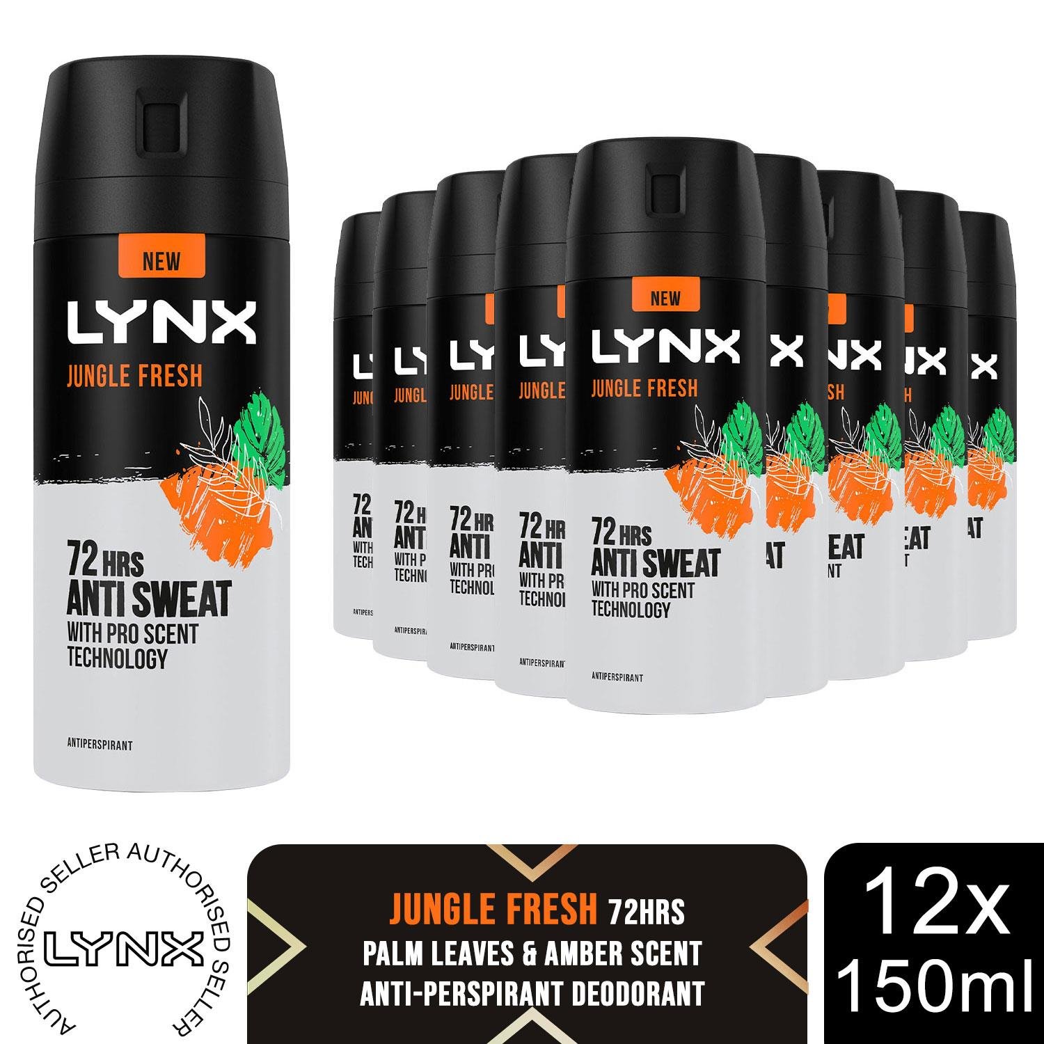 Lynx Jungle Fresh Antiperspirant Spray 72H Protection Deodorant 200ml, 12 Pack