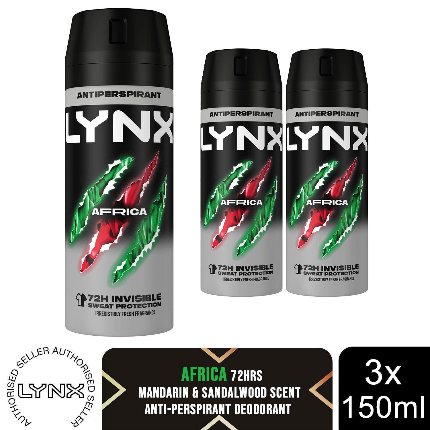 Lynx Africa Antiperspirant Aerosol Deodorant Spray 48H Sweat Protection, 3x150ml