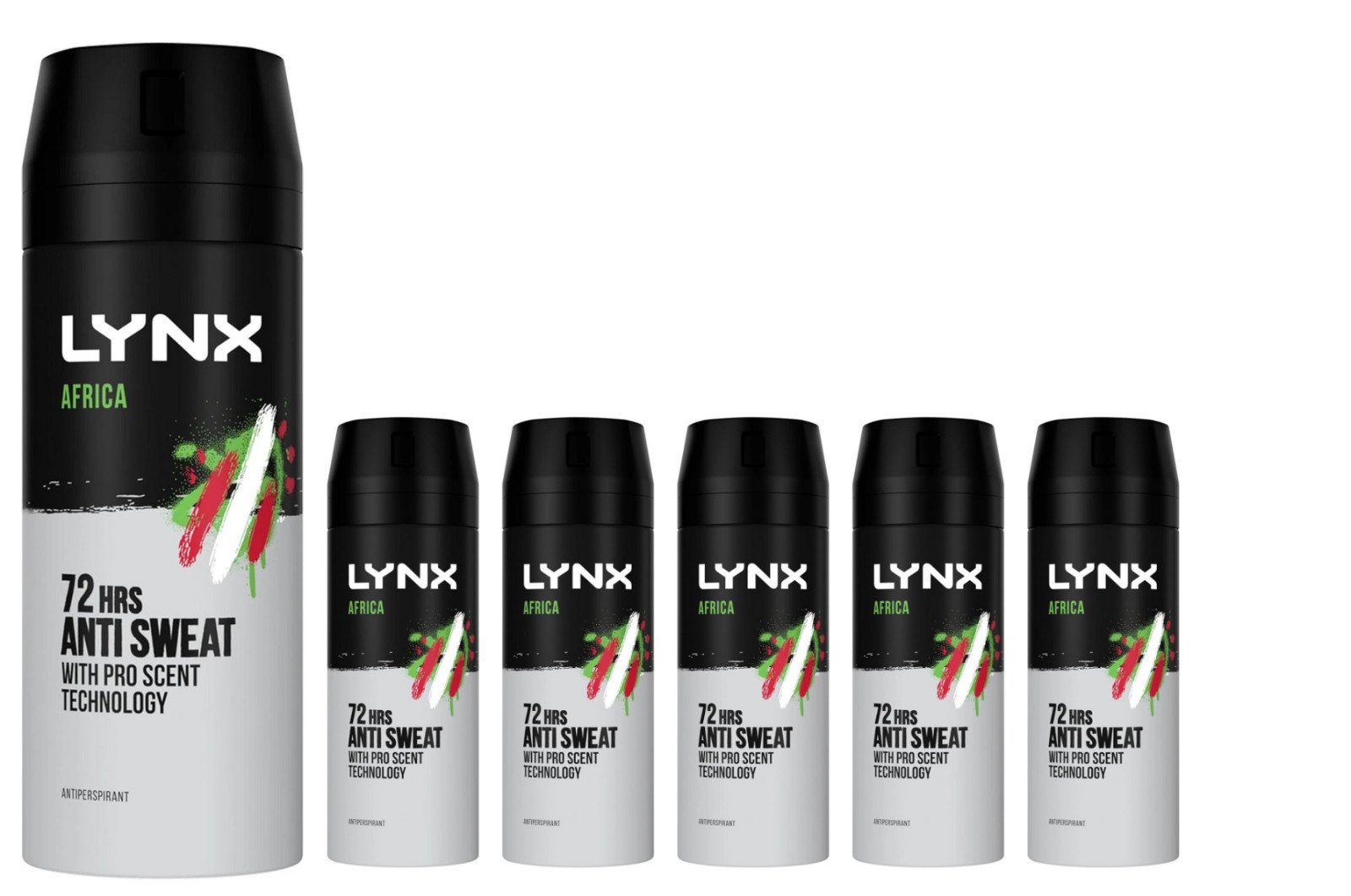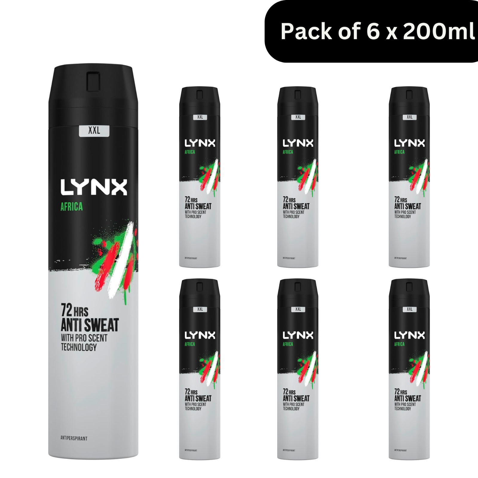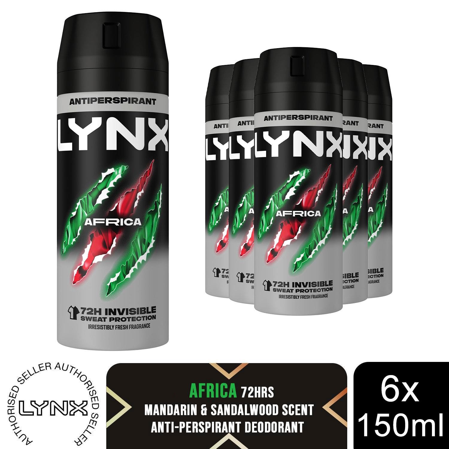 6 x 150ml Lynx Africa Antiperspirant Deodorant Spray 72-Hours Anti Sweat