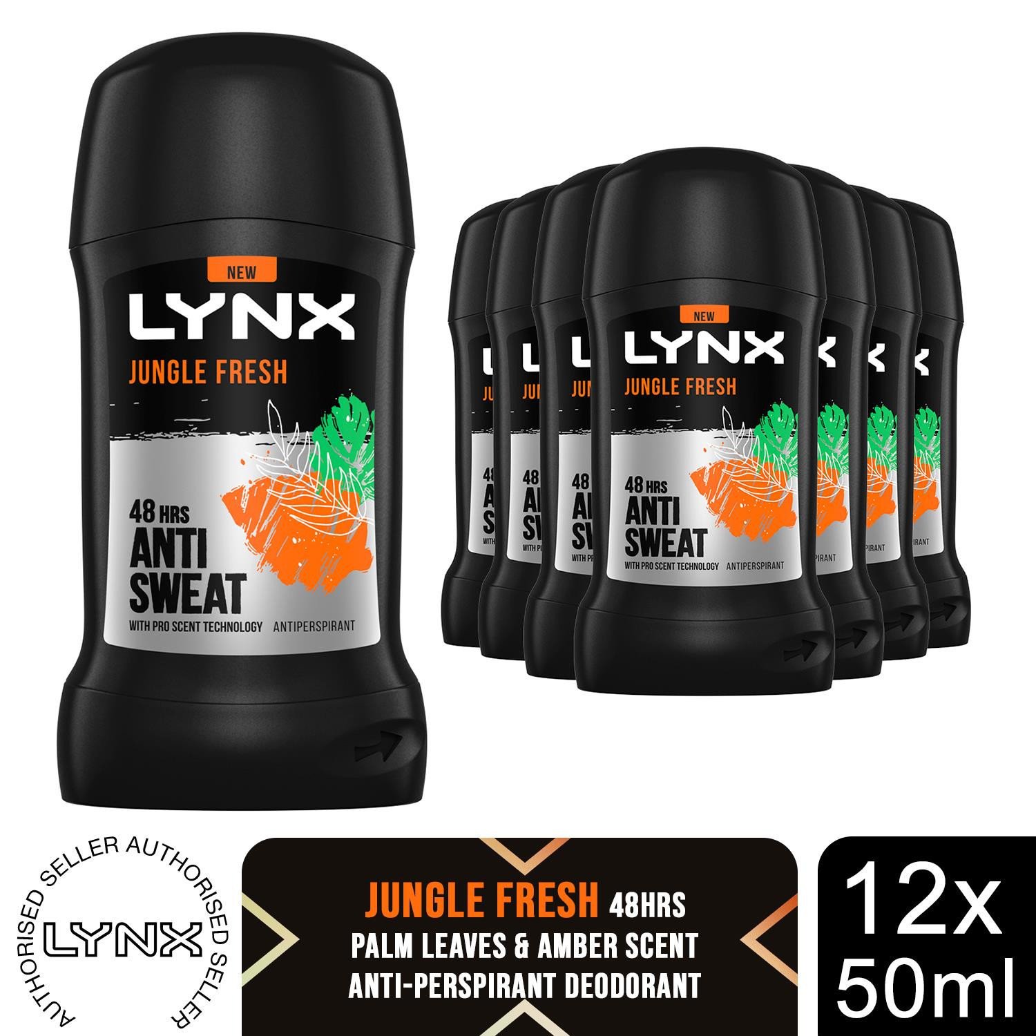 Lynx Antiperspirant Deodorant Stick 48H Odour Protection Jungle Fresh 50ml, 12pk