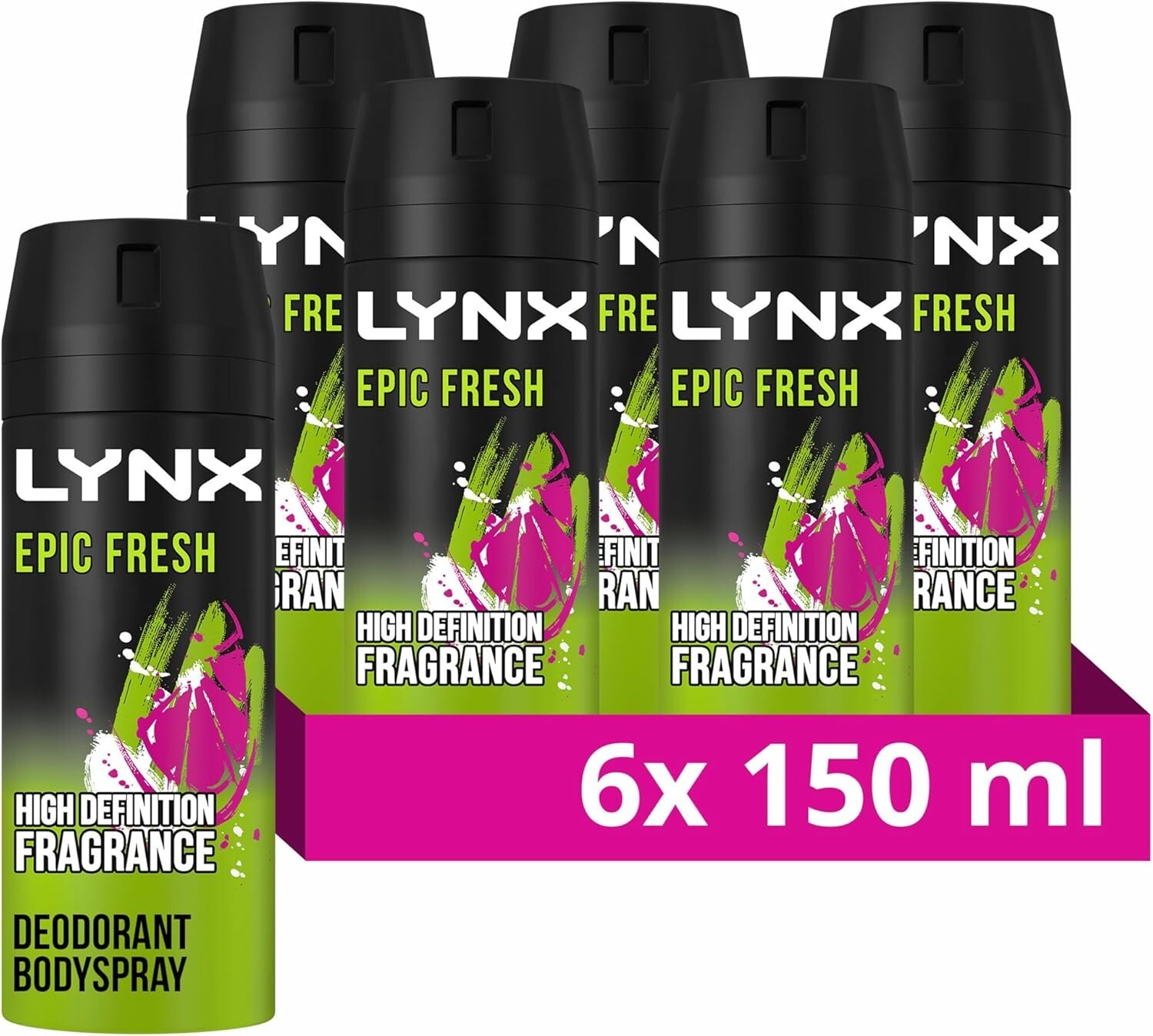 Lynx Antiperspirant Epic Fresh Body Spray 48 Hours 200ml - Pack of 6