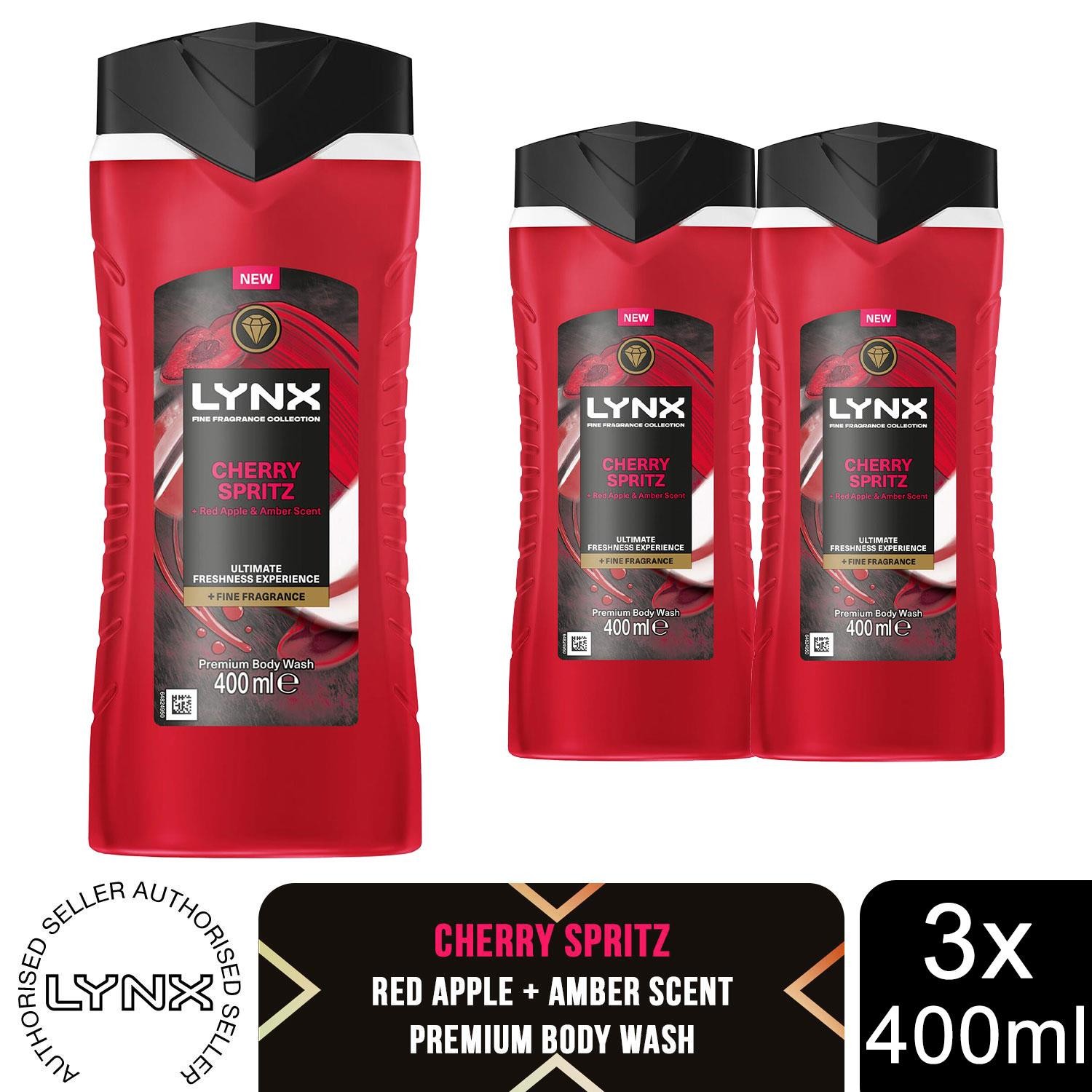 Lynx Cherry Spritz Body Wash with 12Hrs of Freshness for Men 400ml, 3 Pack