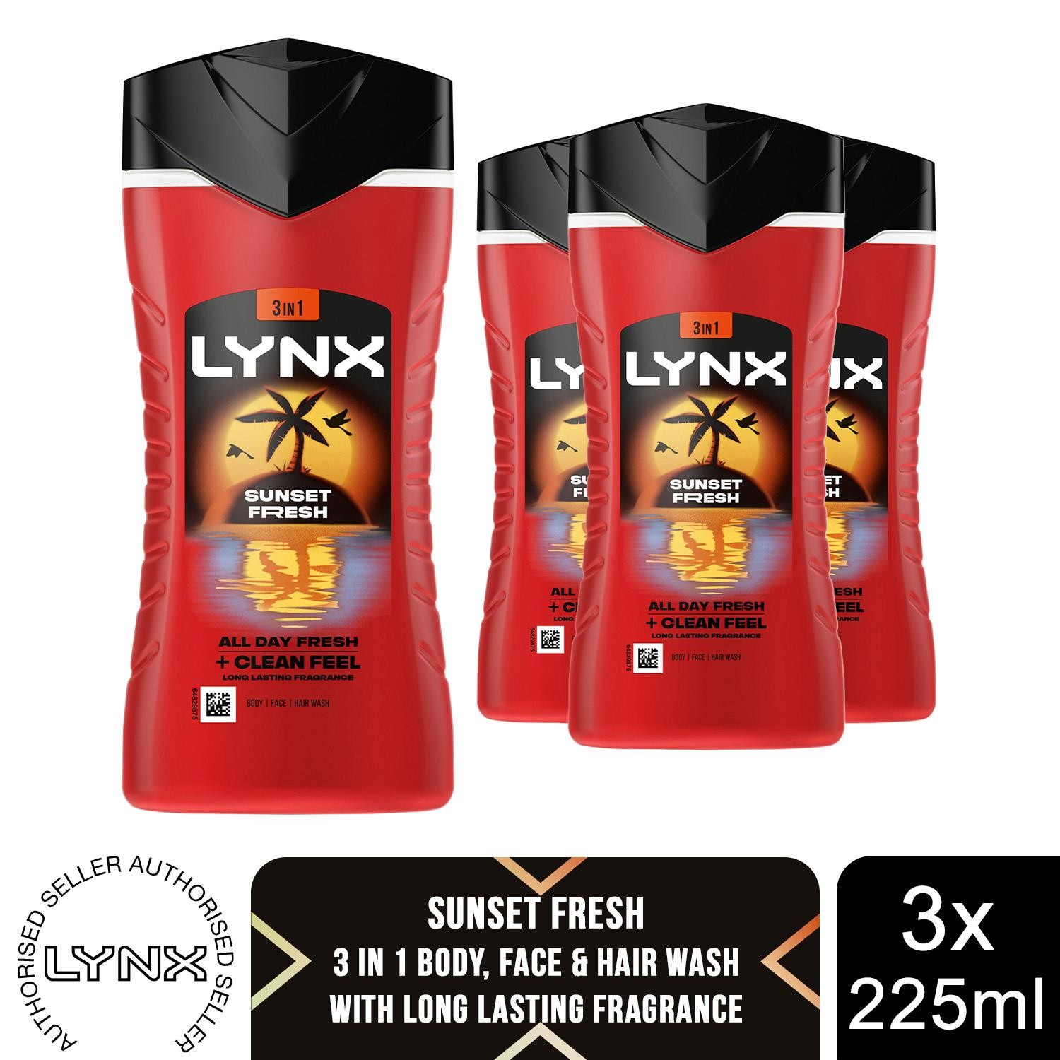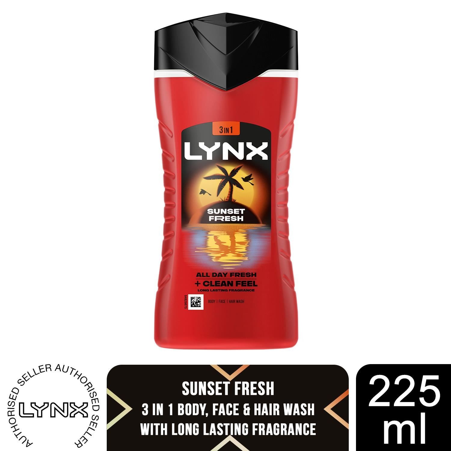 Lynx Sunset Fresh Body Wash for Men 225ml, 3 Pack