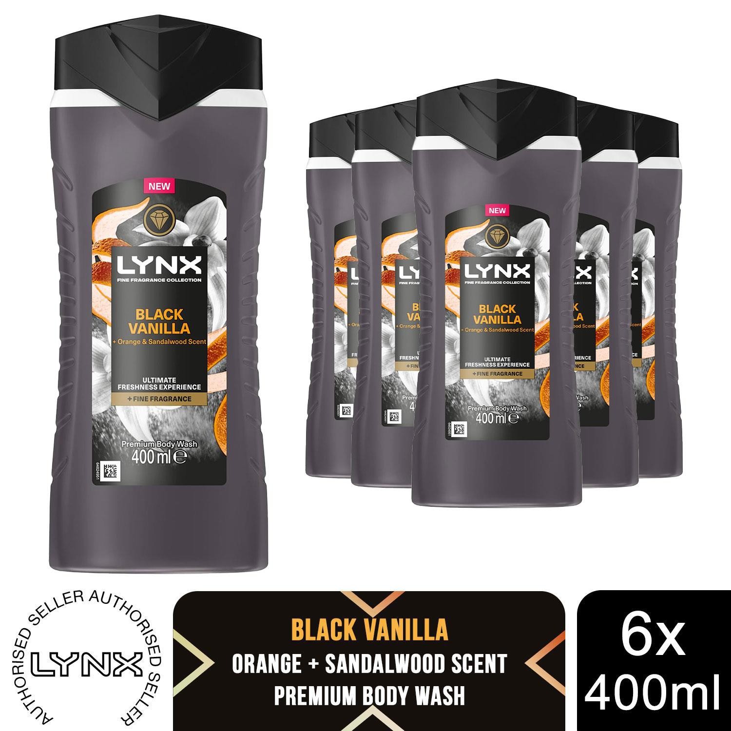 Lynx Black Vanilla Body Wash with 12Hrs of Freshness for Men 400ml, 6 Pack