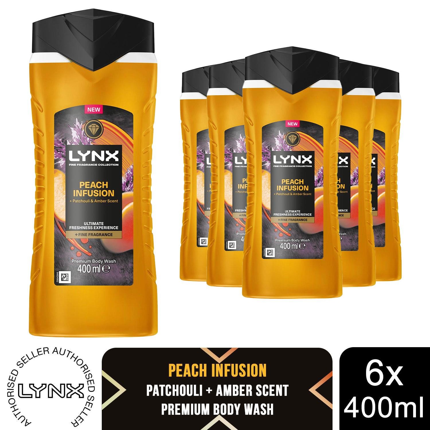 Lynx Peach Infusion Body Wash with 12Hrs of Freshness for Men 400ml, 6 Pack