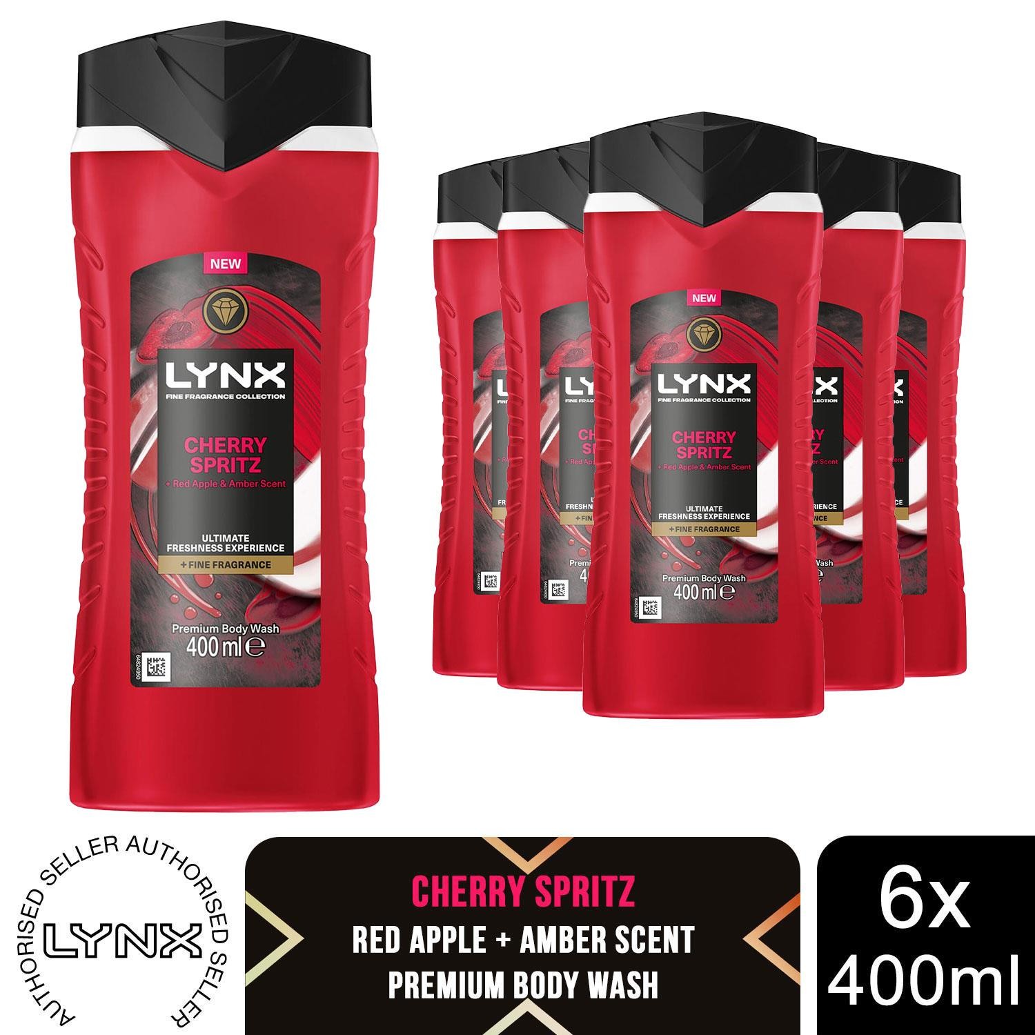Lynx Cherry Spritz Body Wash with 12Hrs of Freshness for Men 400ml, 6 Pack - Apple - One Size